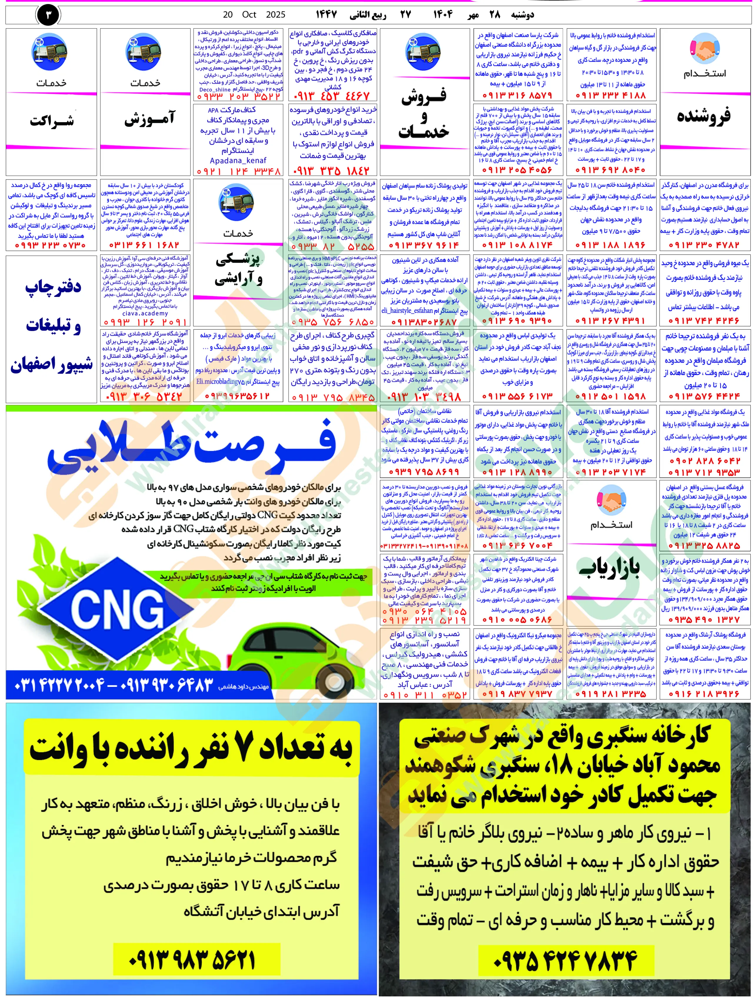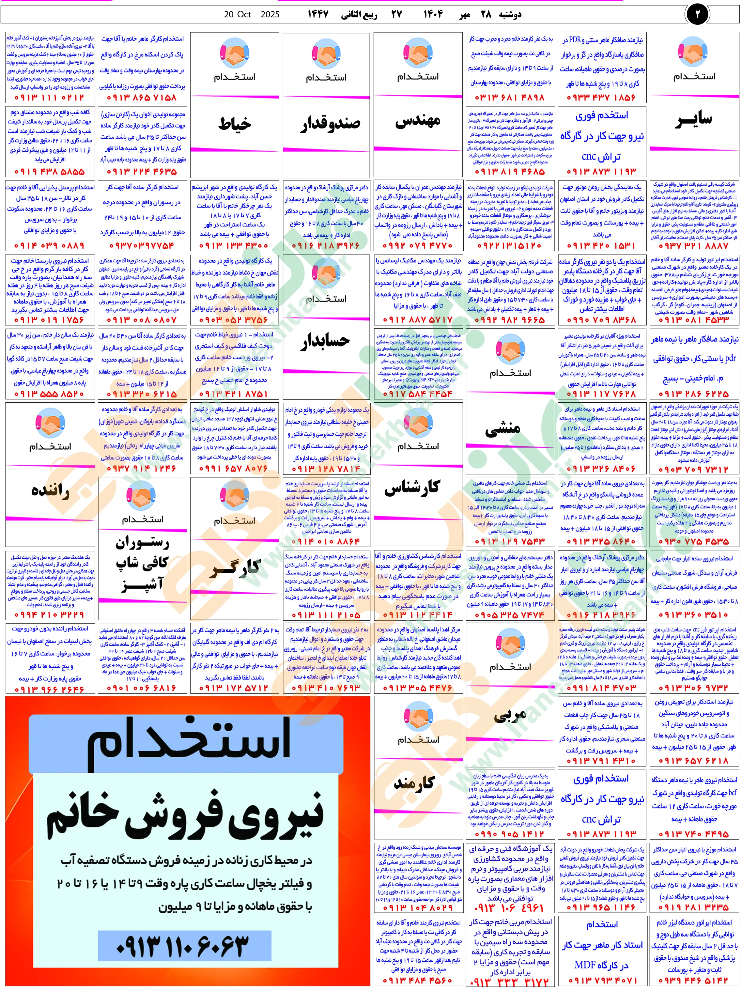 روزنامه استخدامی استان اصفهان | عصر دوشنبه 28 مهر 1404