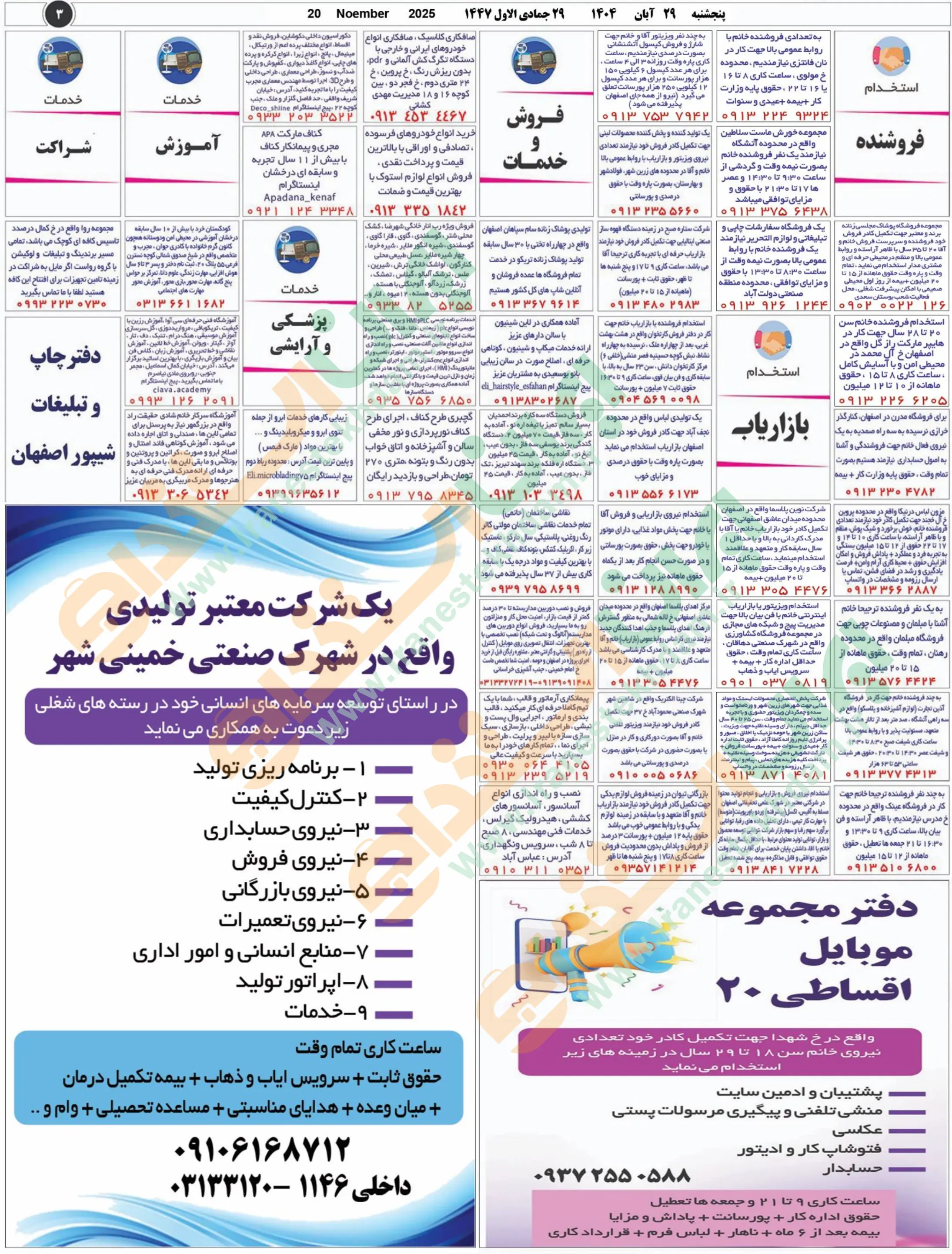 روزنامه استخدامی استان اصفهان | عصر پنجشنبه 29 آبان 1404