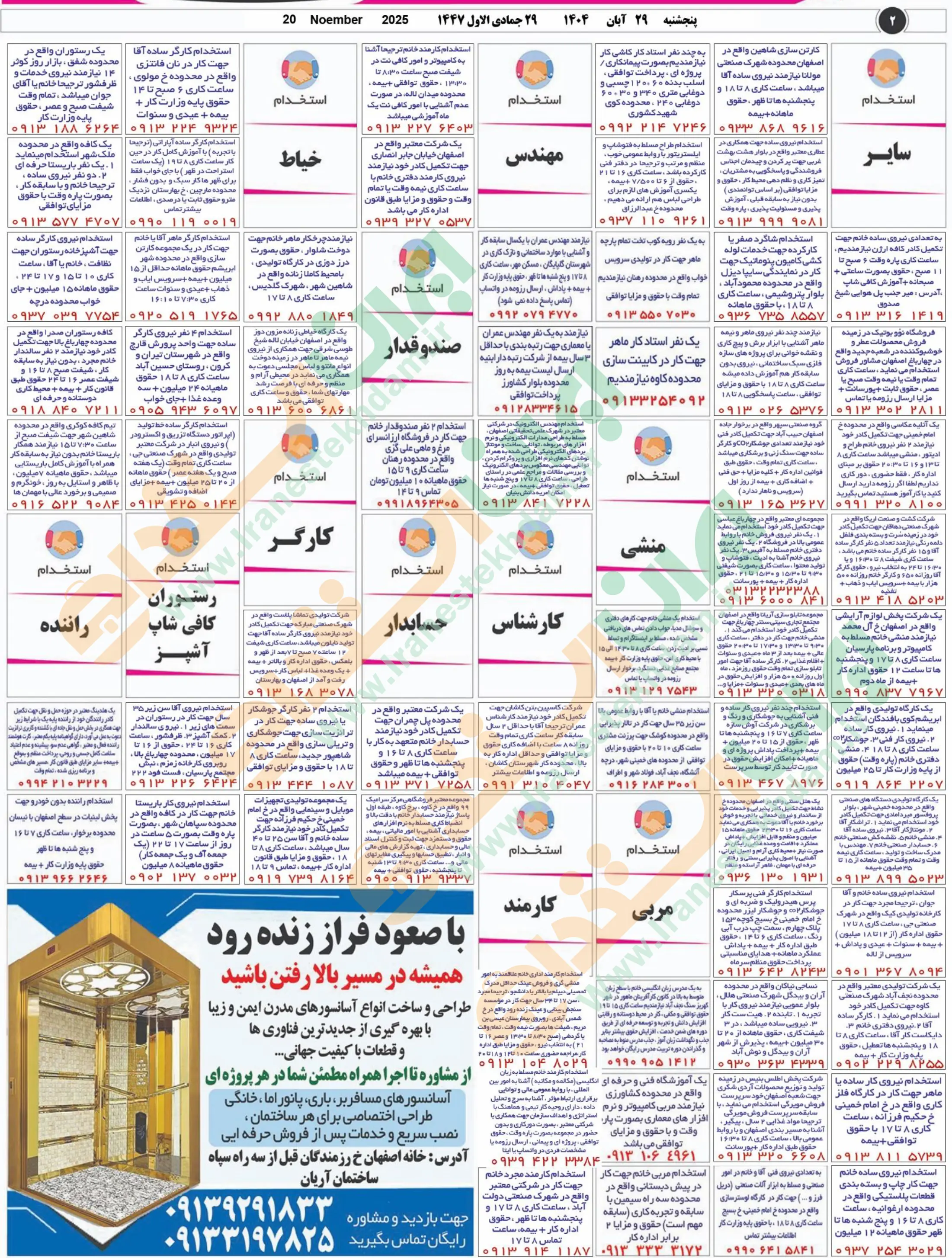روزنامه استخدامی استان اصفهان | عصر پنجشنبه ۲۹ آبان ۱۴۰۴