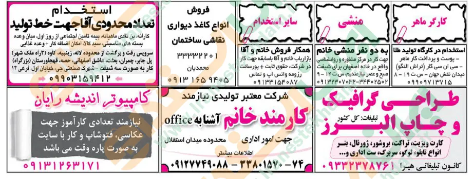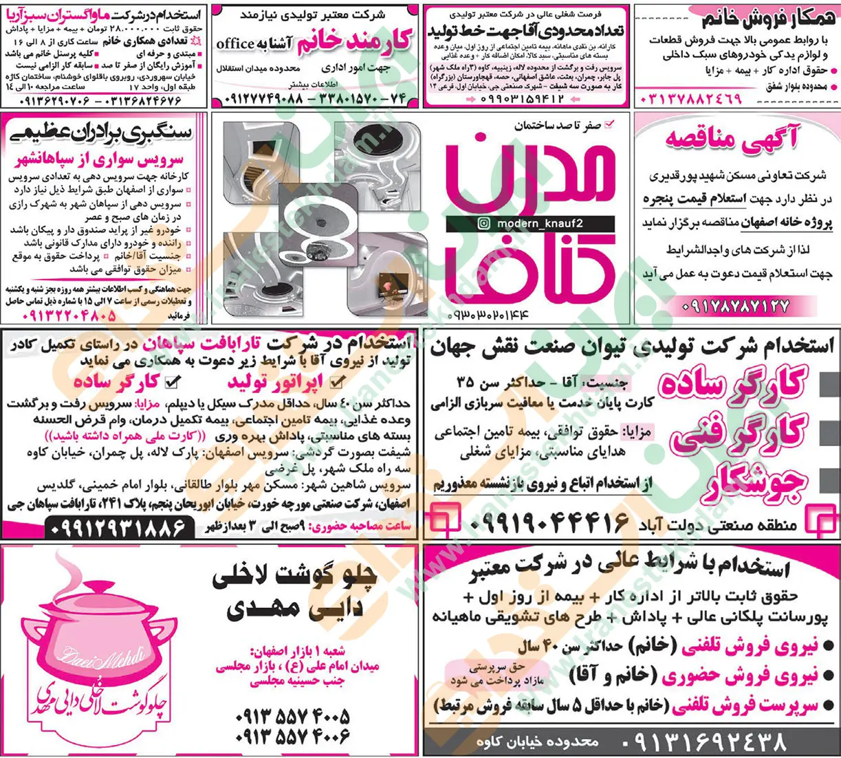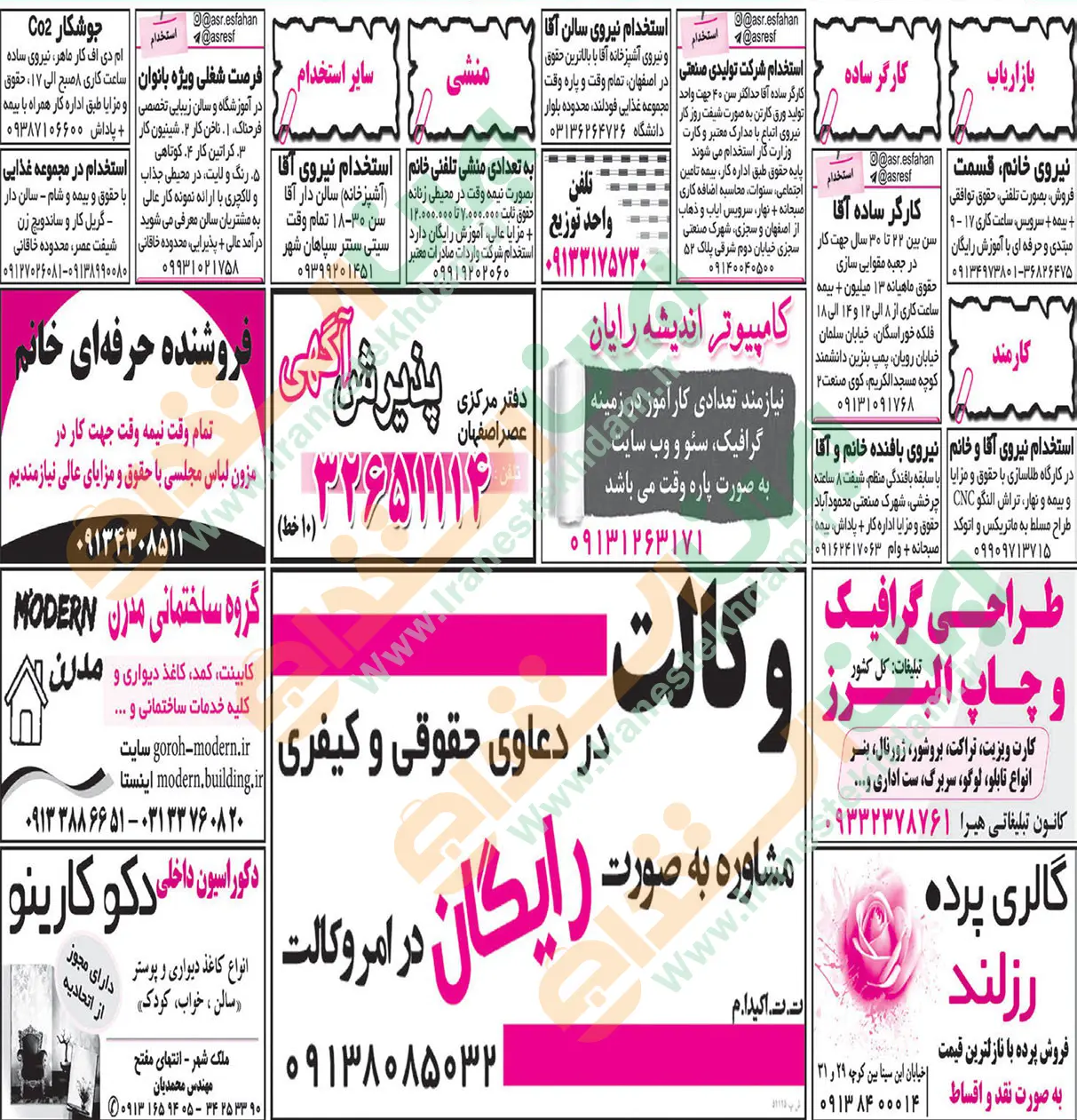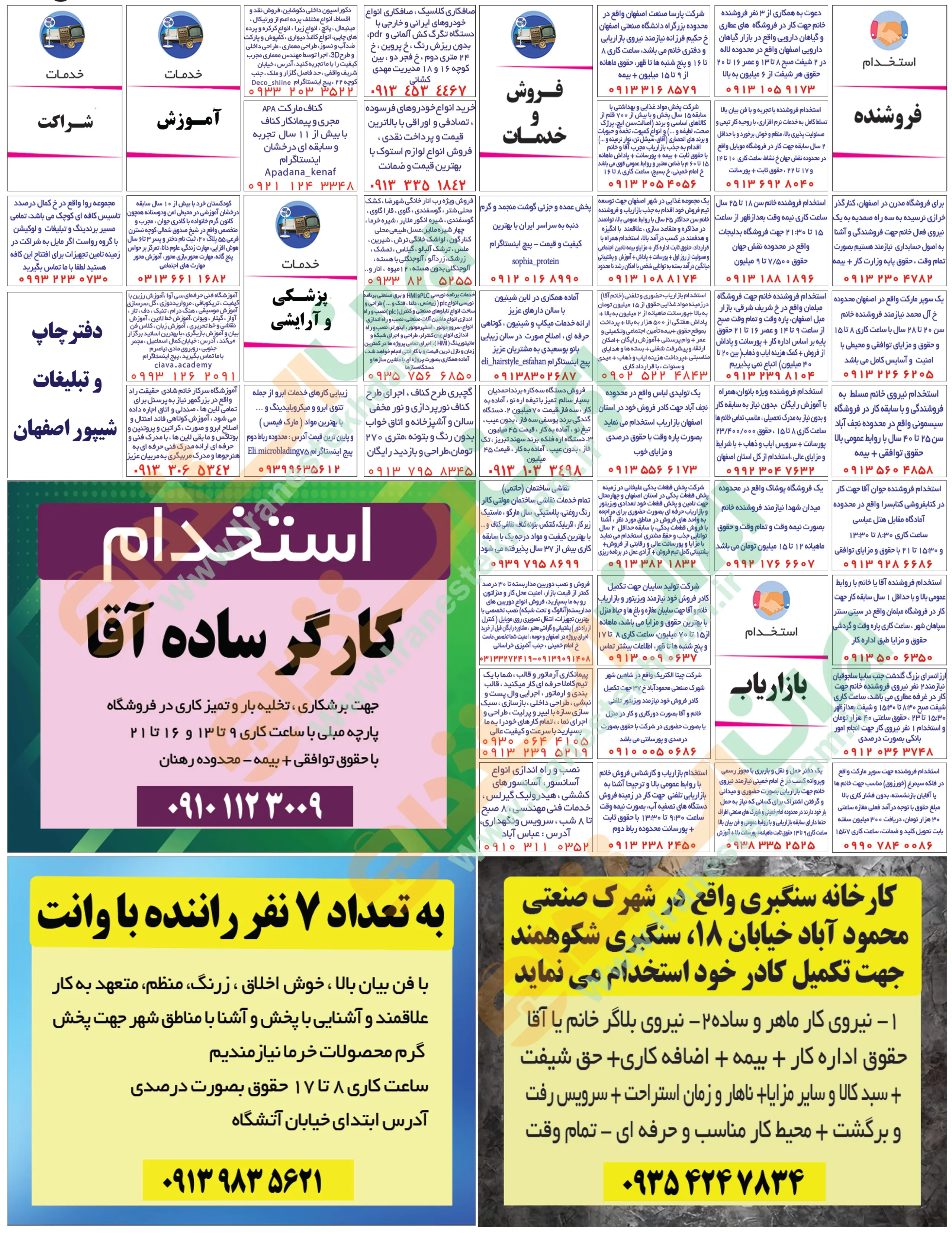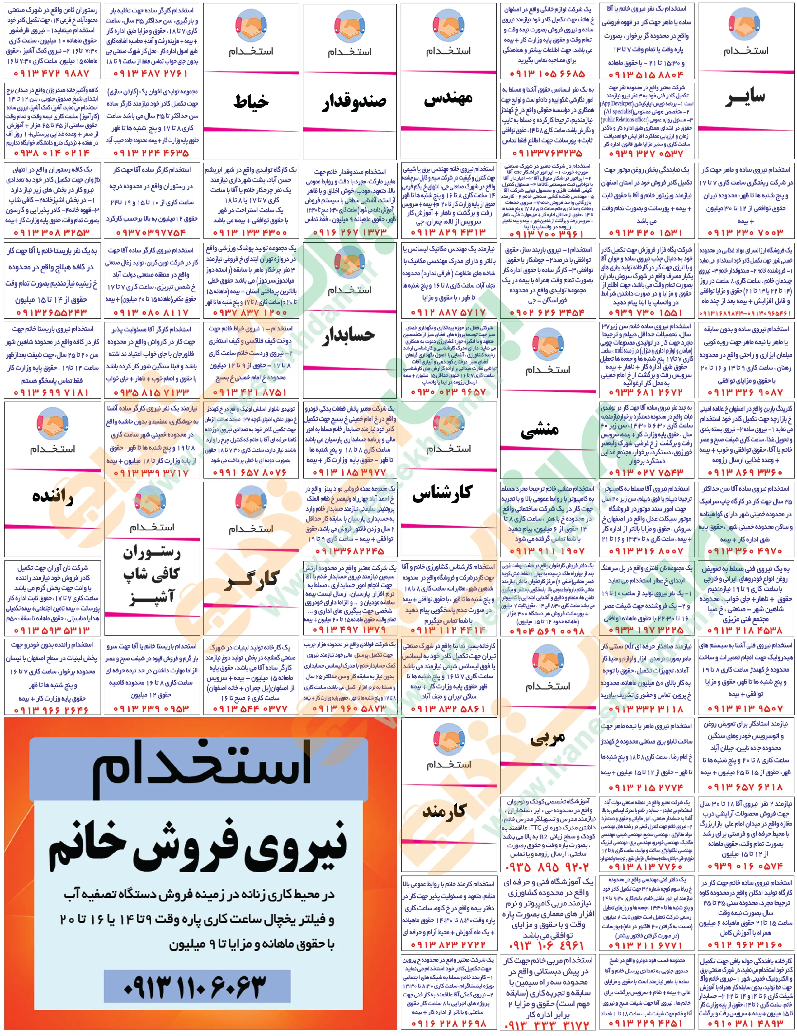 روزنامه استخدامی استان اصفهان | عصر شنبه ۲۹ شهریور ۱۴۰۴