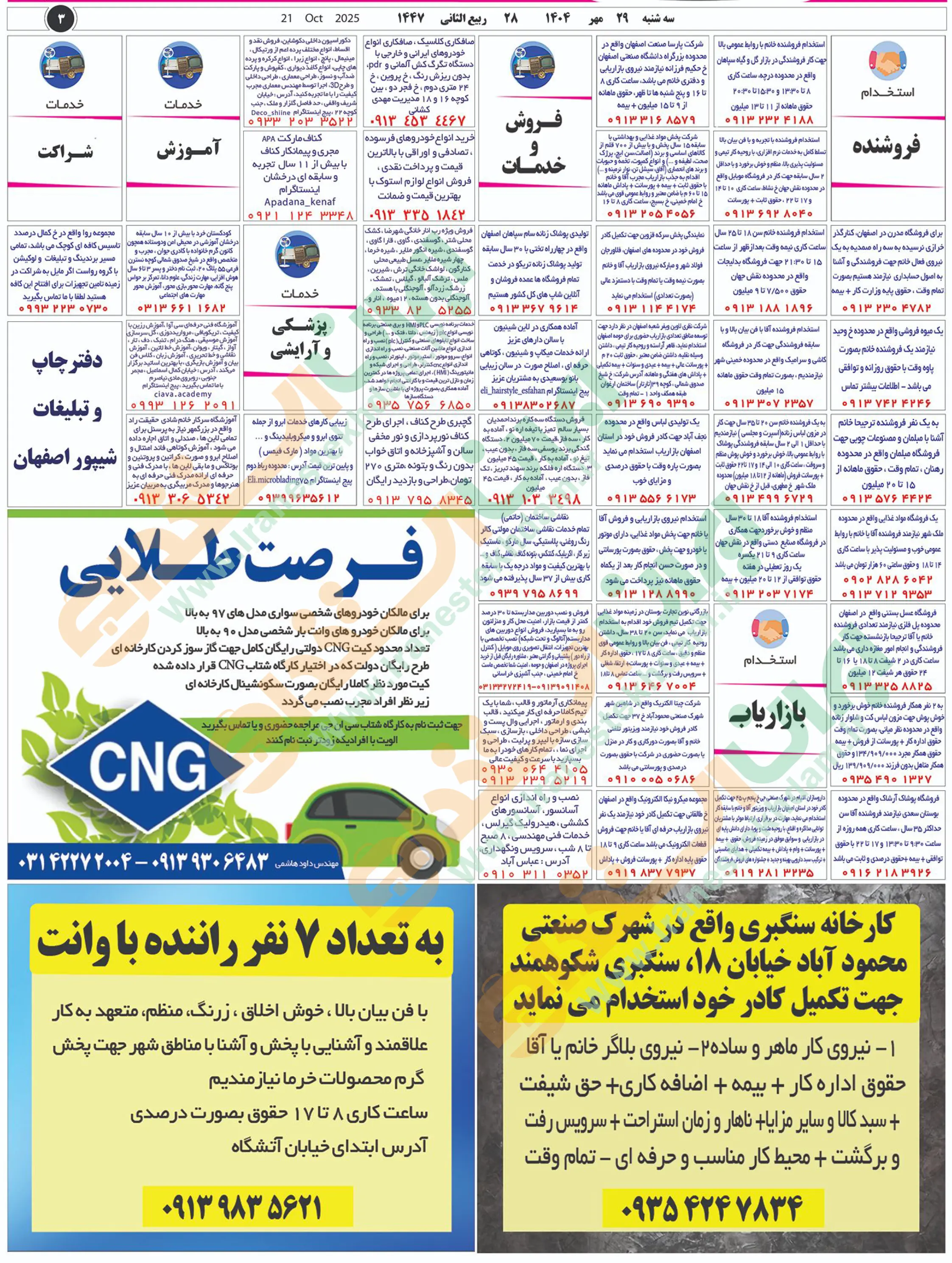 روزنامه استخدامی استان اصفهان | عصر سهشنبه 29 مهر 1404