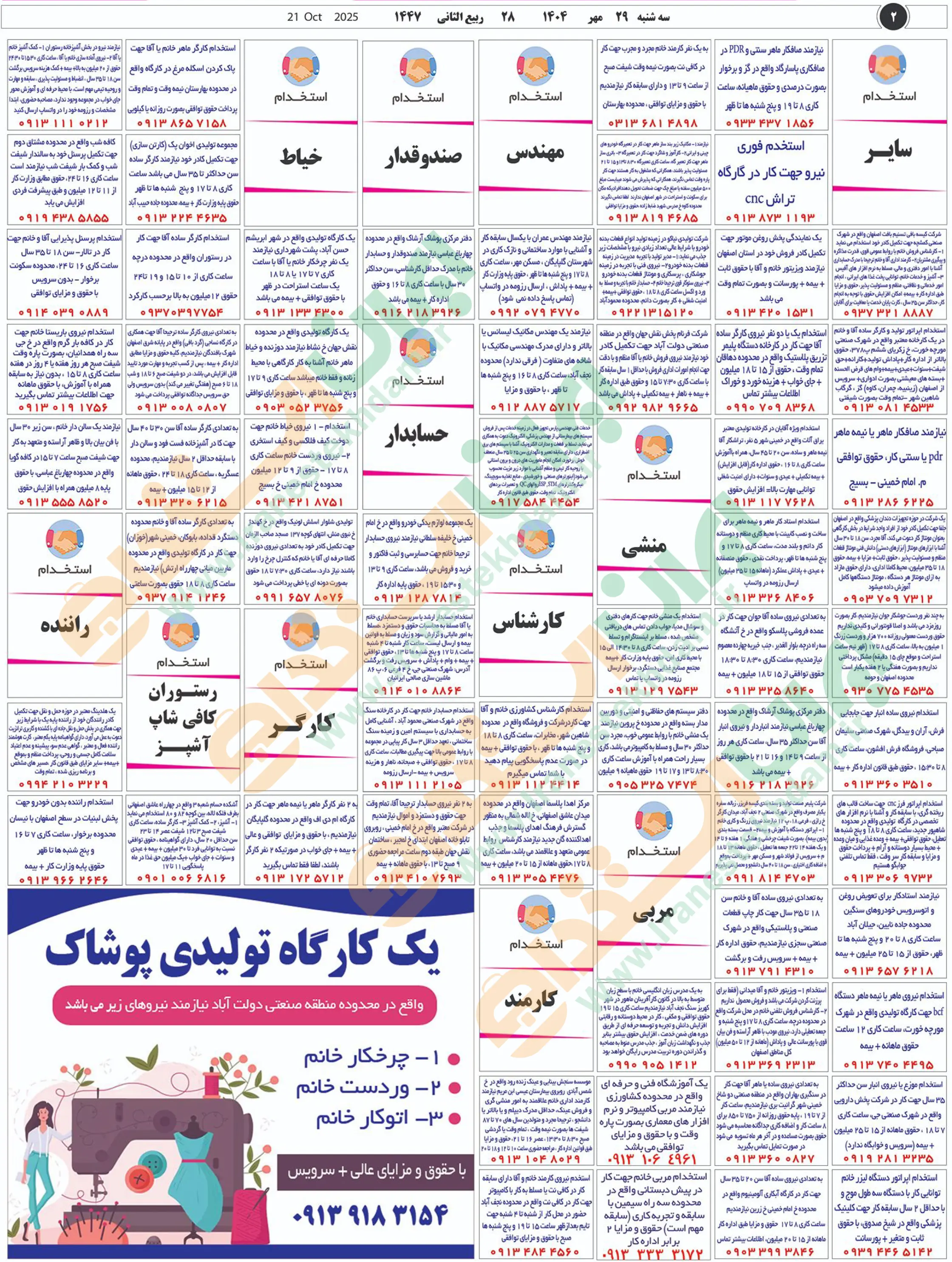 روزنامه استخدامی استان اصفهان | عصر سهشنبه ۲۹ مهر ۱۴۰۴