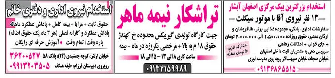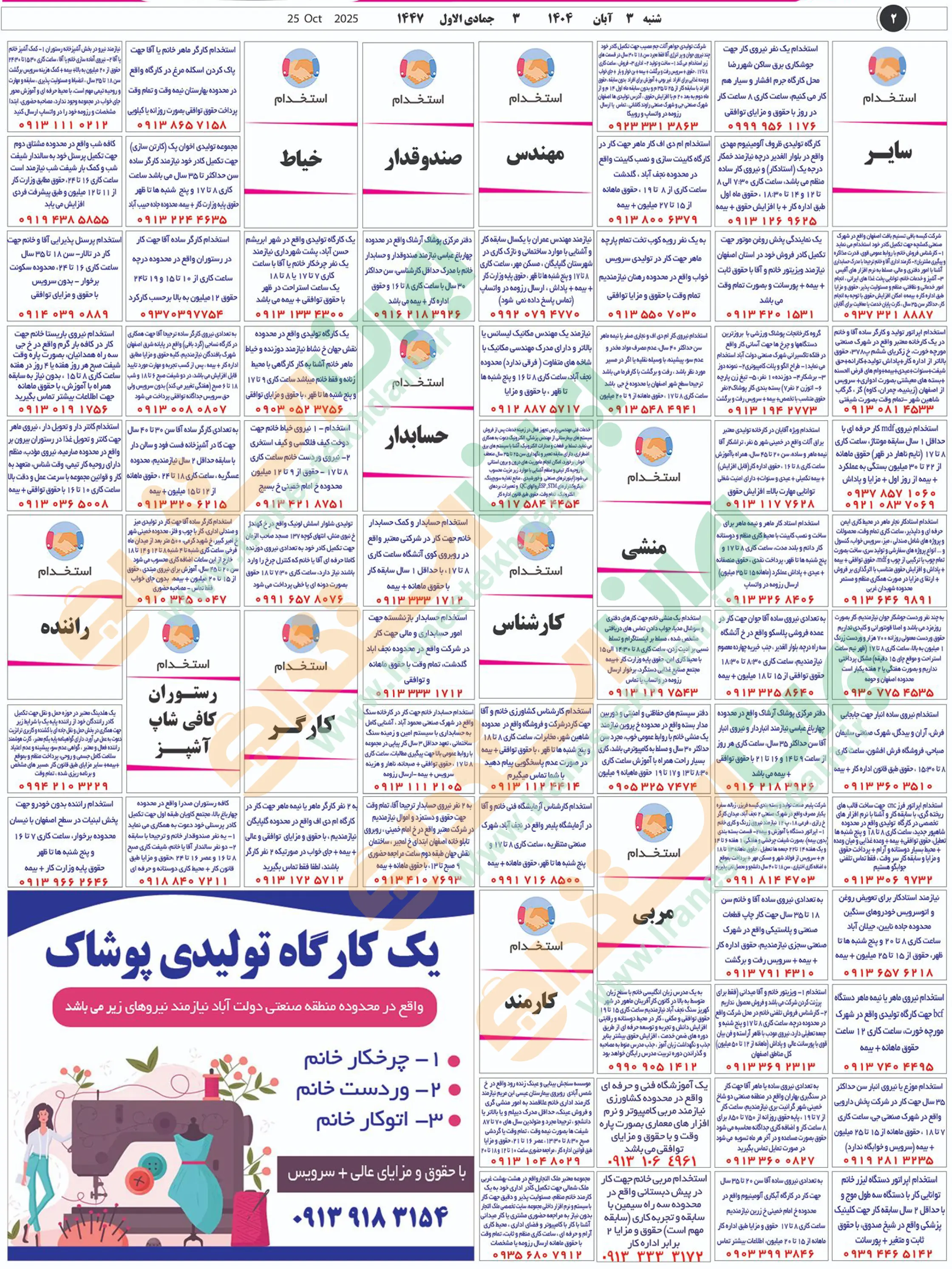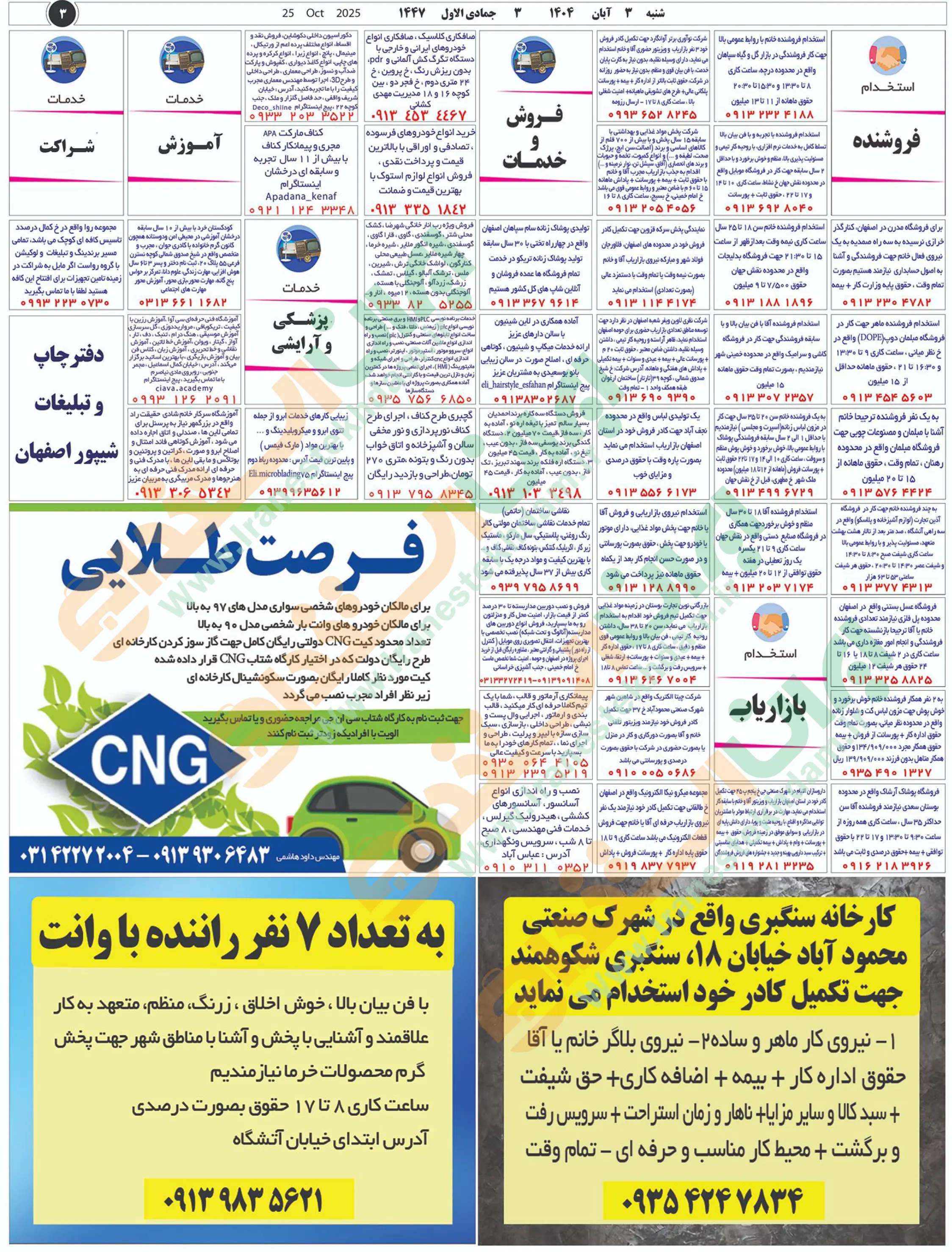 روزنامه استخدامی استان اصفهان | عصر شنبه ۳ آبان ۱۴۰۴