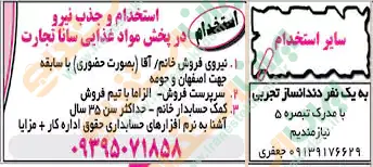 همچنین برای مشاهده صفحه نیازمندی های استخدامی استان اصفهان اینجا کلیک نمایید