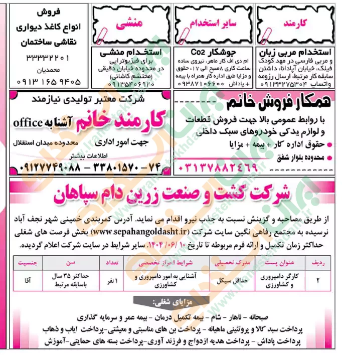 روزنامه استخدامی استان اصفهان | عصر دوشنبه ۳ شهریور ۱۴۰۴