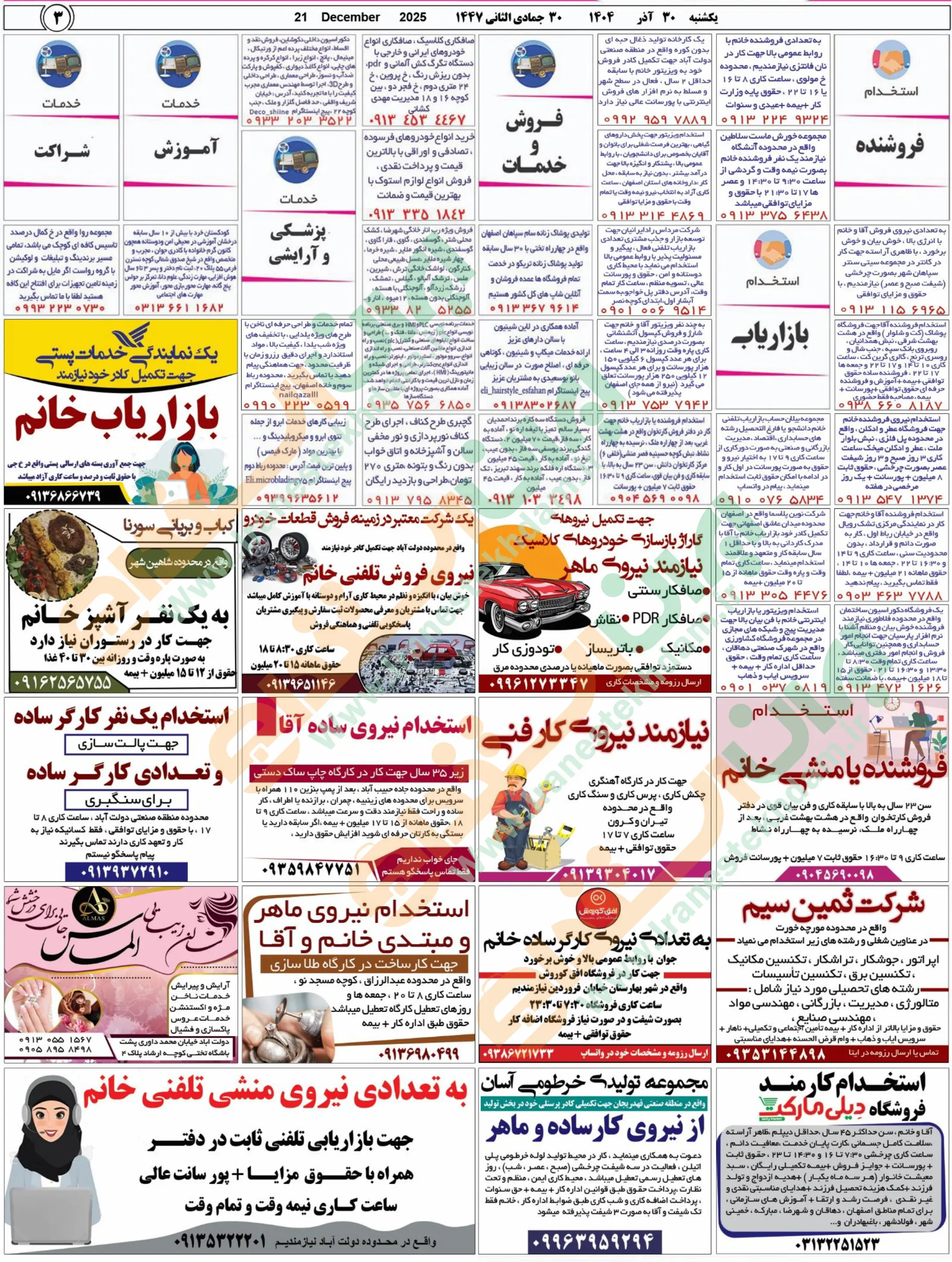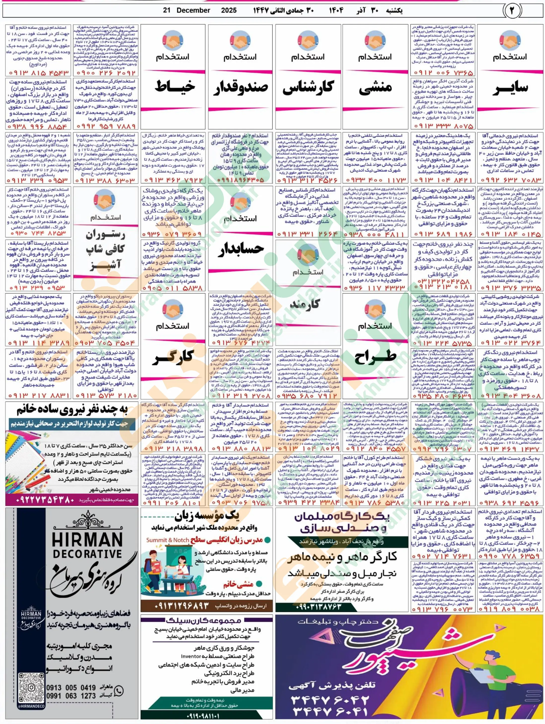 روزنامه استخدامی استان اصفهان | عصر یکشنبه ۳۰ آذر ۱۴۰۴