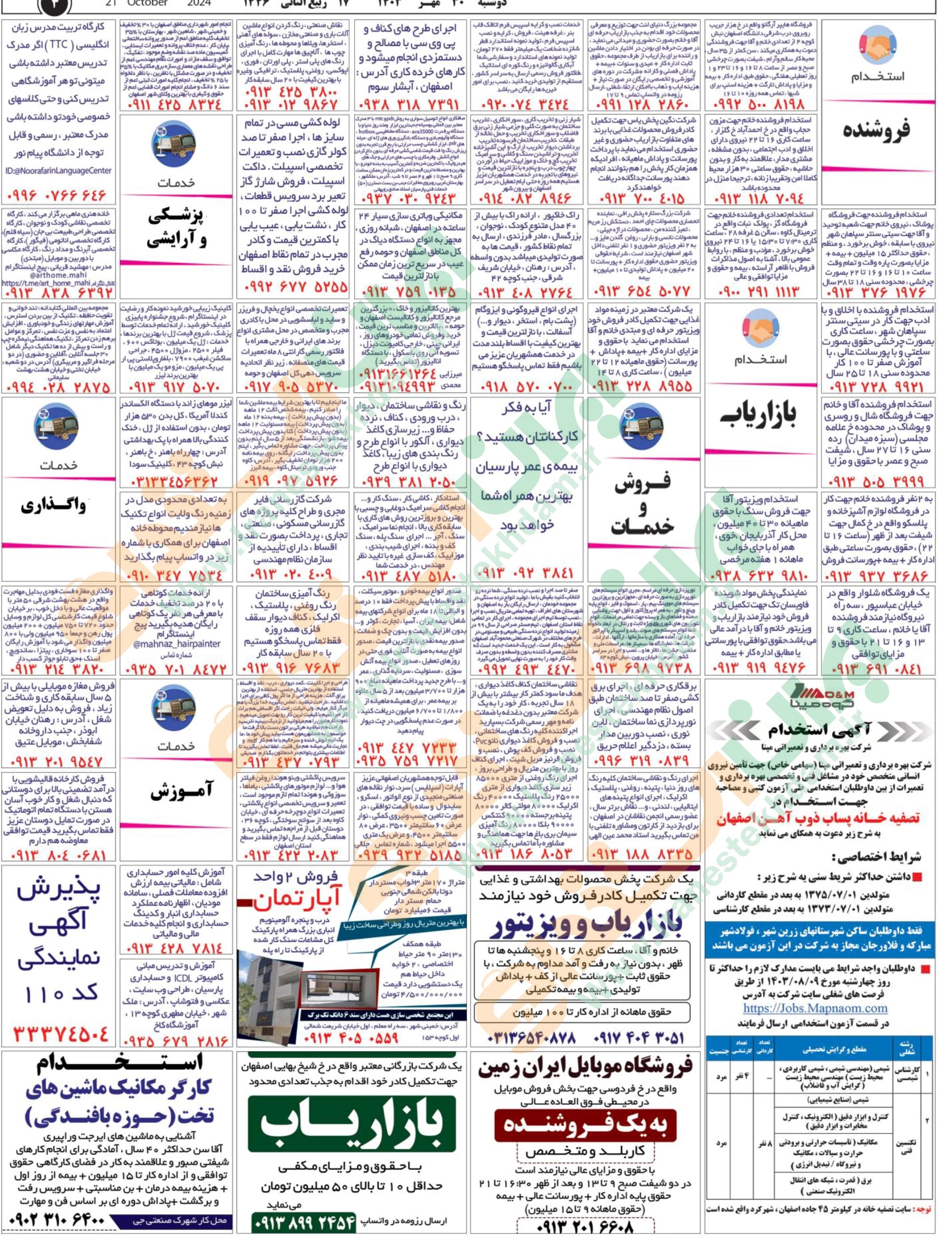 روزنامه استخدامی استان اصفهان | عصر دوشنبه 30 مهر 1403