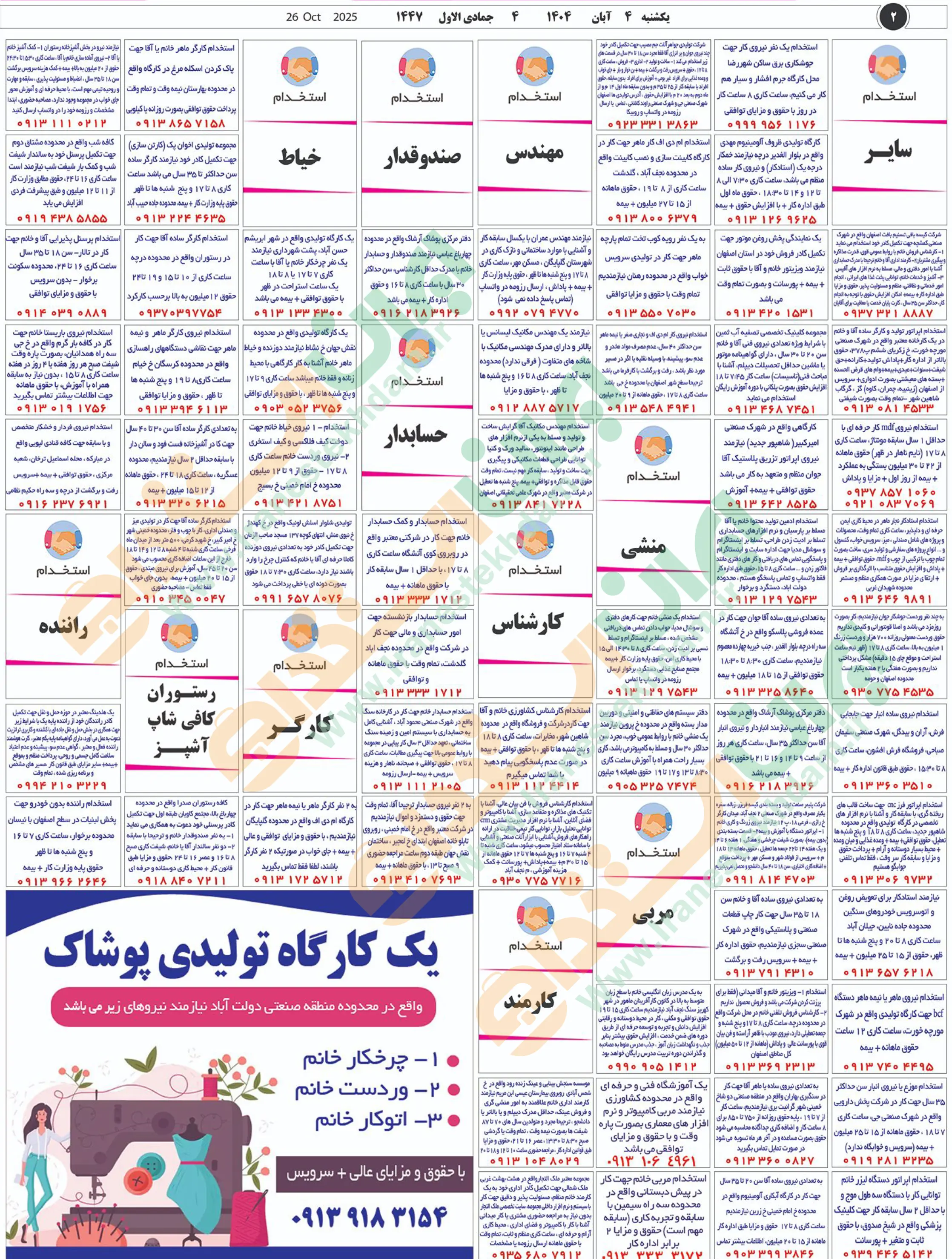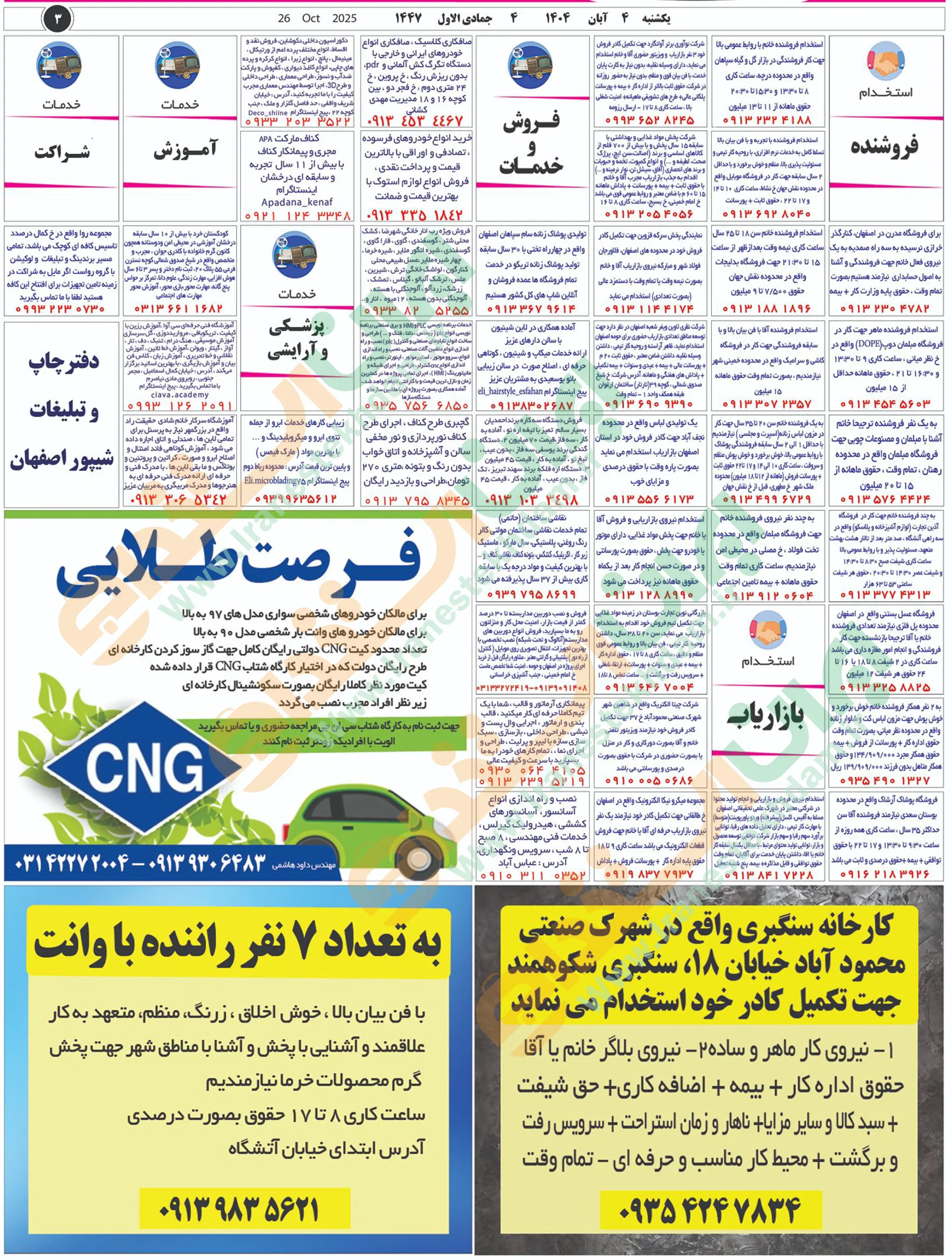روزنامه استخدامی استان اصفهان | عصر یکشنبه ۴ آبان ۱۴۰۴