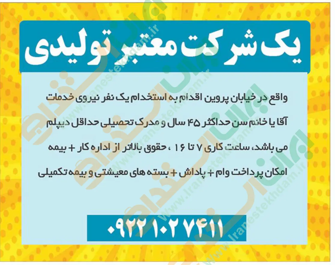 همچنین برای مشاهده صفحه نیازمندی های استخدامی استان اصفهان اینجا کلیک نمایید