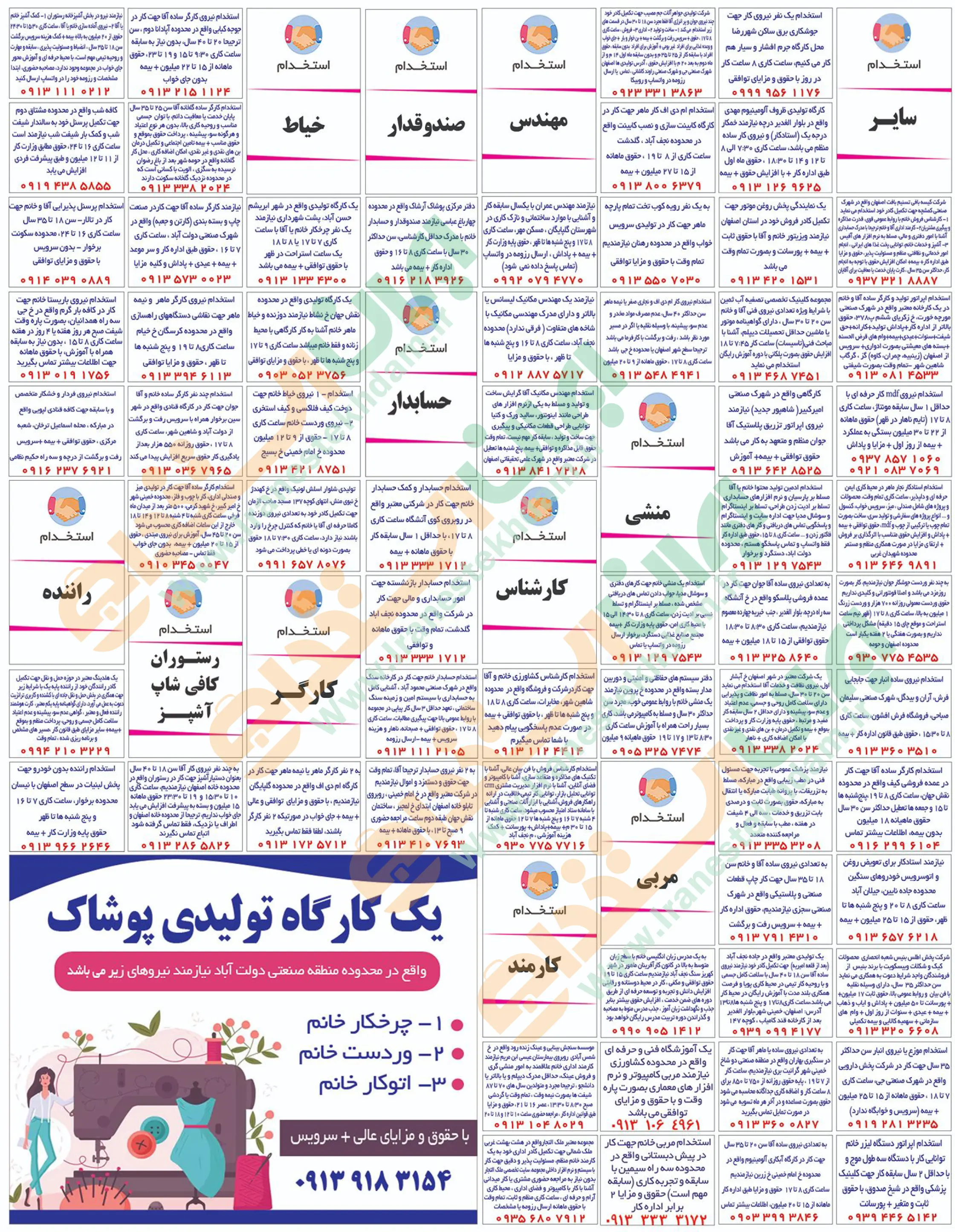 همچنین برای مشاهده صفحه نیازمندی های استخدامی استان اصفهان اینجا کلیک نمایید
