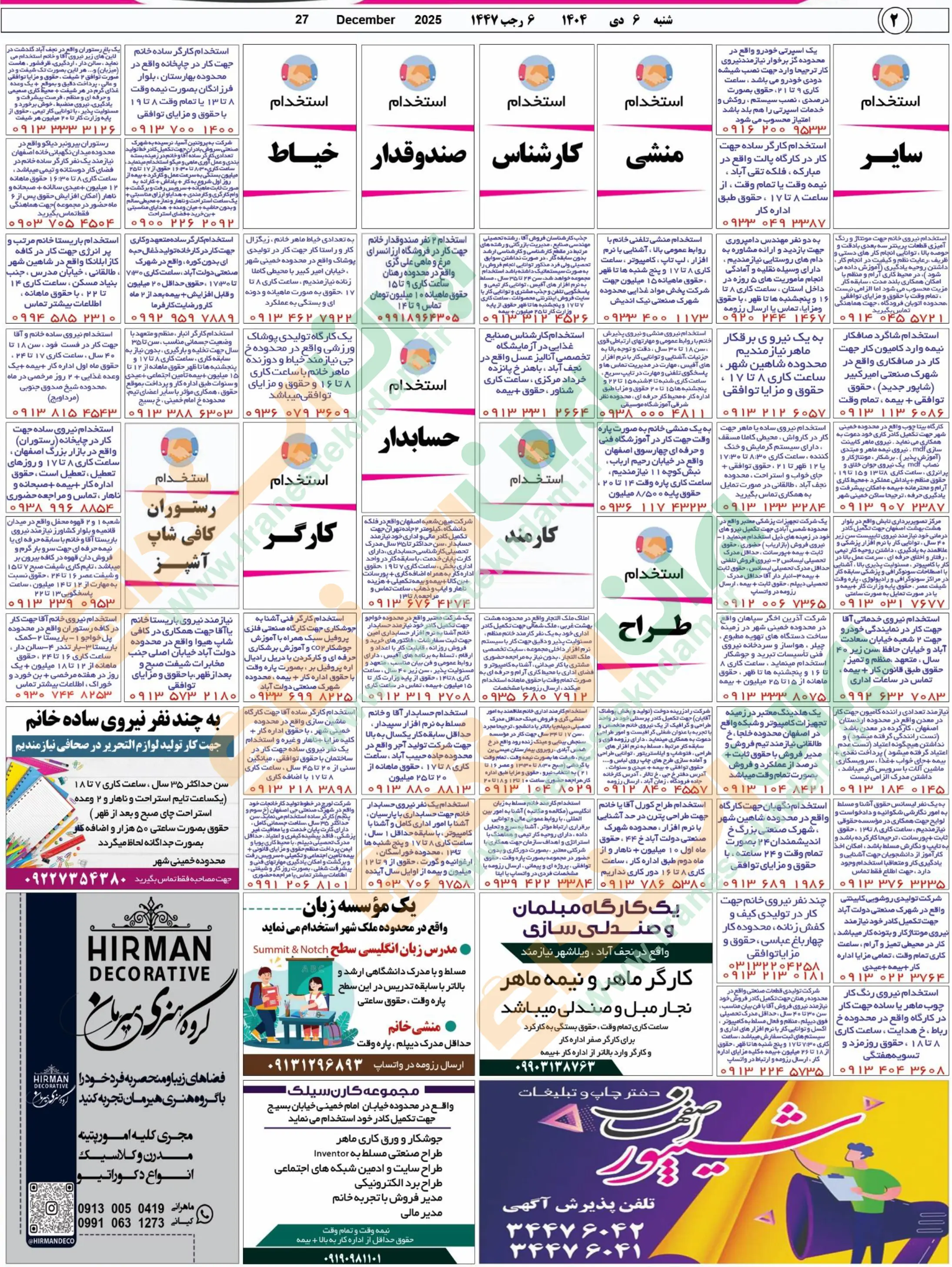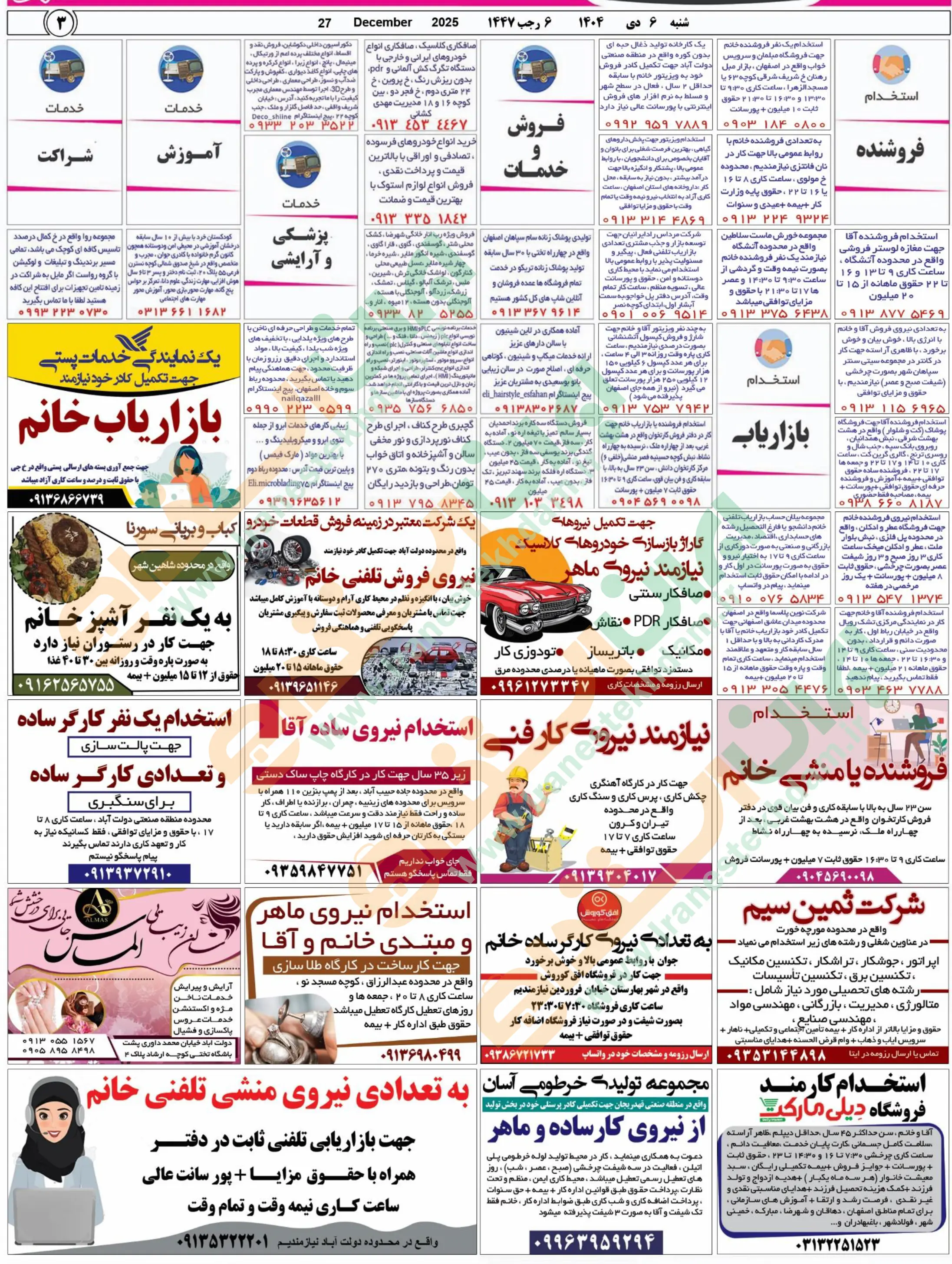 روزنامه استخدامی استان اصفهان | عصر شنبه ۶ دی ۱۴۰۴