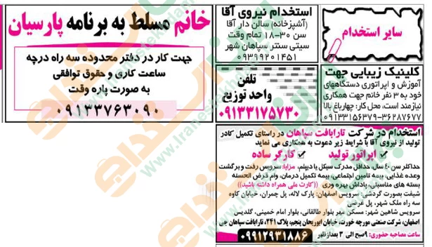 آگهی های استخدام استان اصفهان