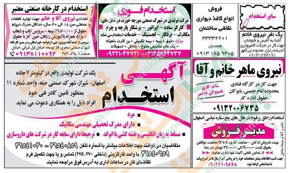 همچنین برای مشاهده صفحه نیازمندی های استخدامی استان اصفهان اینجا کلیک نمایید