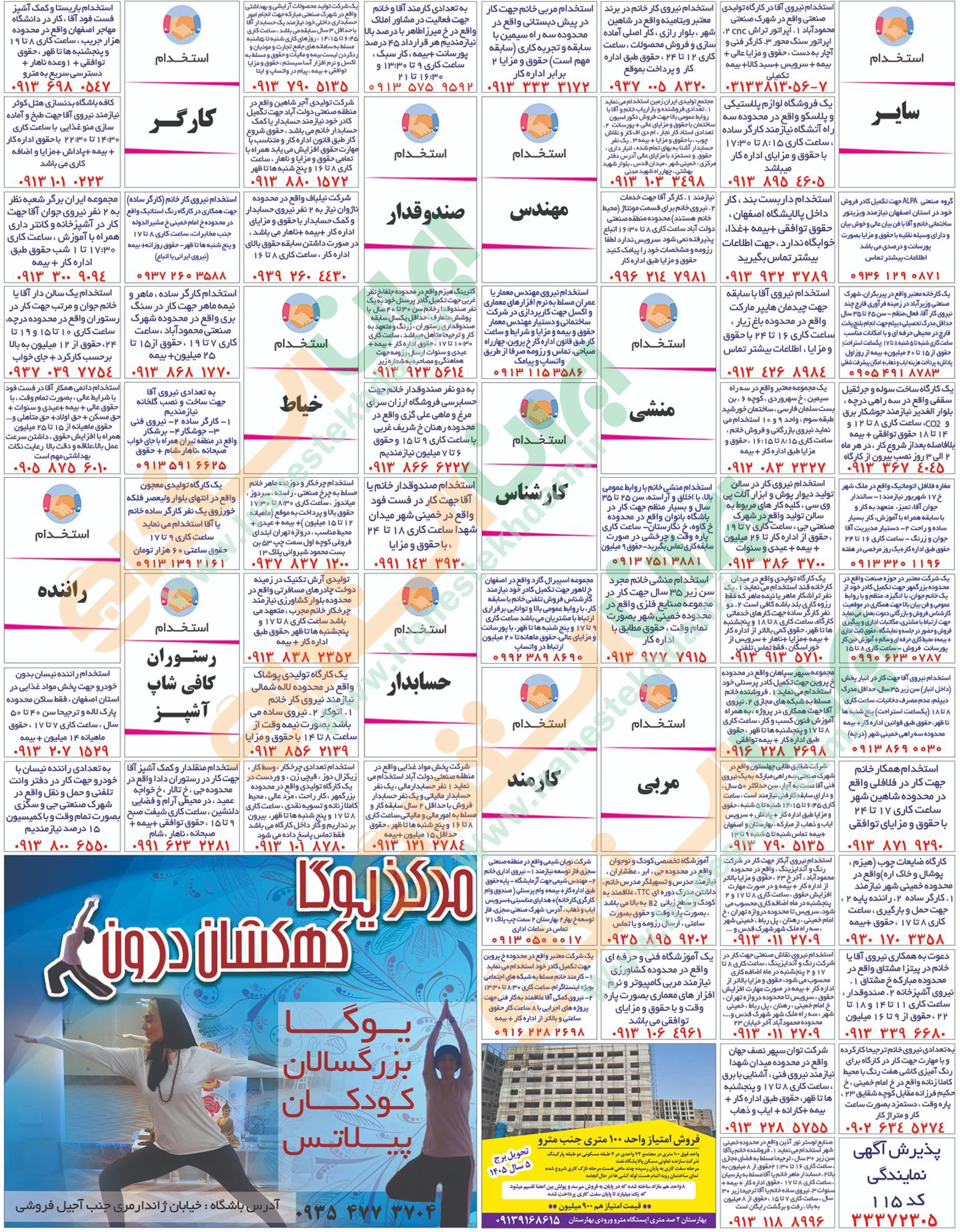 روزنامه استخدامی استان اصفهان | عصر چهارشنبه 7 خرداد 1404