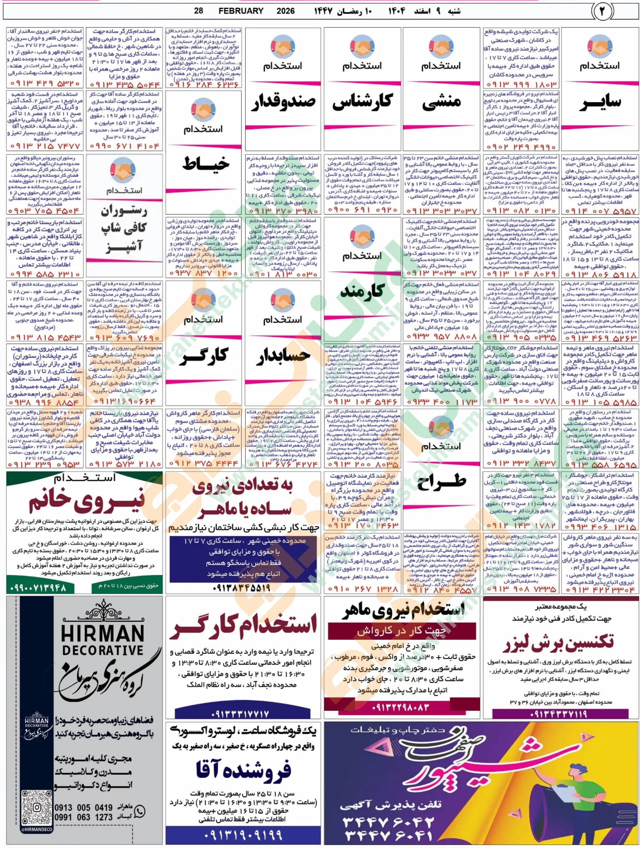 روزنامه استخدامی استان اصفهان | عصر شنبه ۹ اسفند ۱۴۰۴