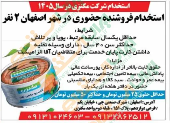 همچنین برای مشاهده صفحه نیازمندی های استخدامی استان اصفهان اینجا کلیک نمایید
