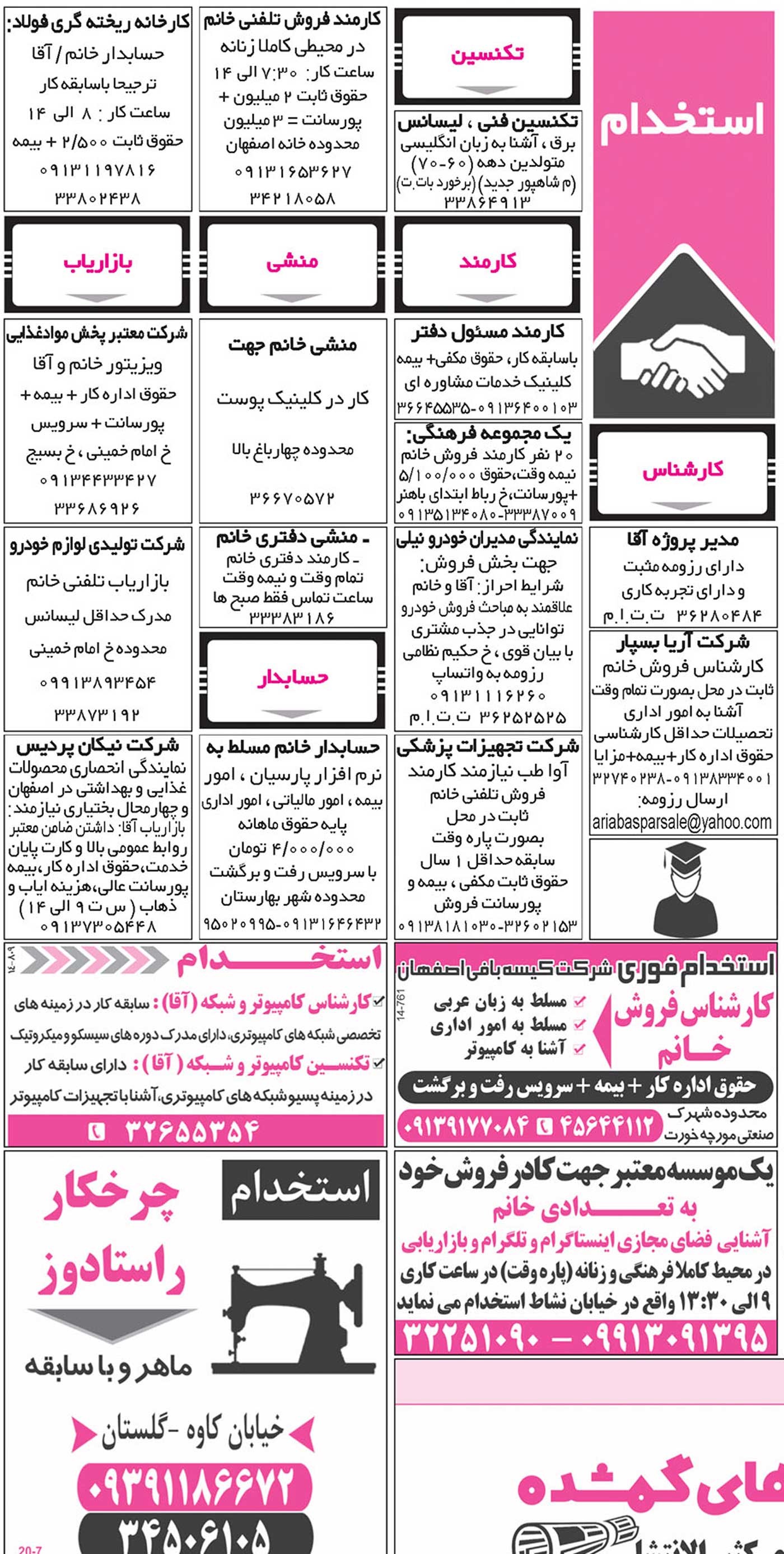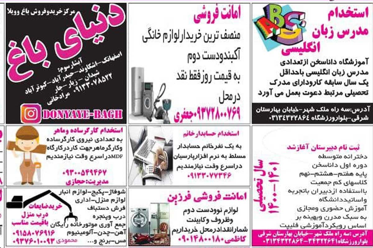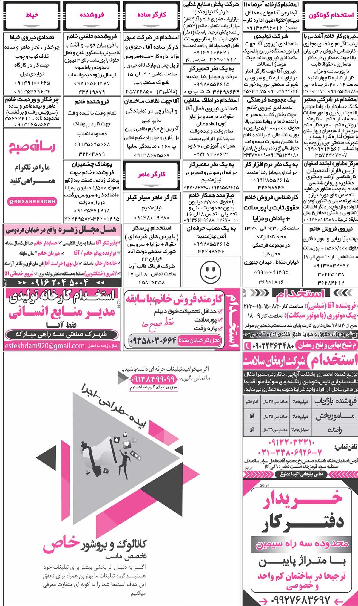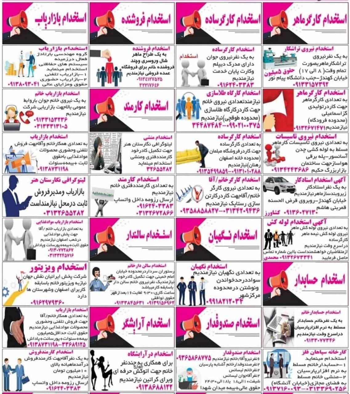 روزنامه استخدامی استان اصفهان | صبح یکشنبه ۱۷ مرداد ۱۴۰۰