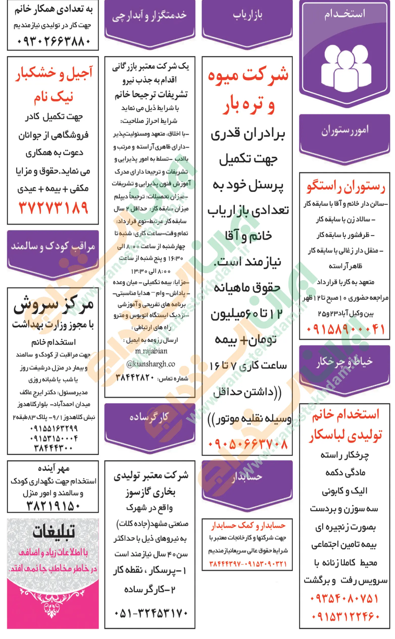 روزنامه استخدامی استان خراسان رضوی و شهر مشهد | دوشنبه 1 دی 1404