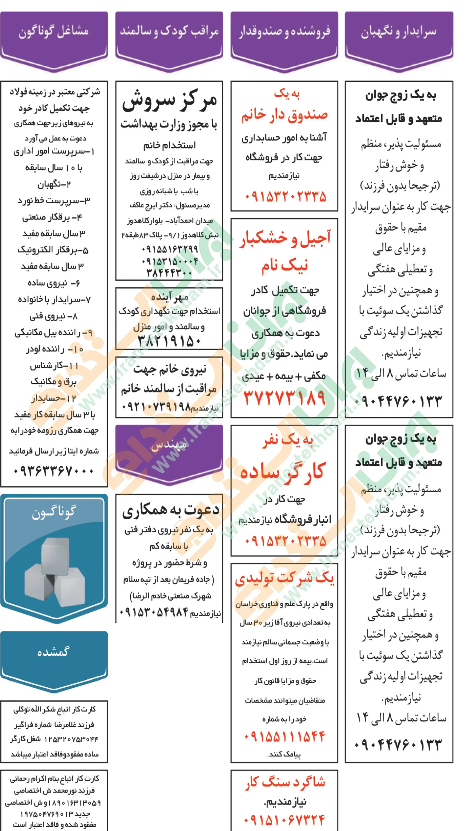 روزنامه استخدامی استان خراسان رضوی و شهر مشهد | دوشنبه 10 آذر 1404