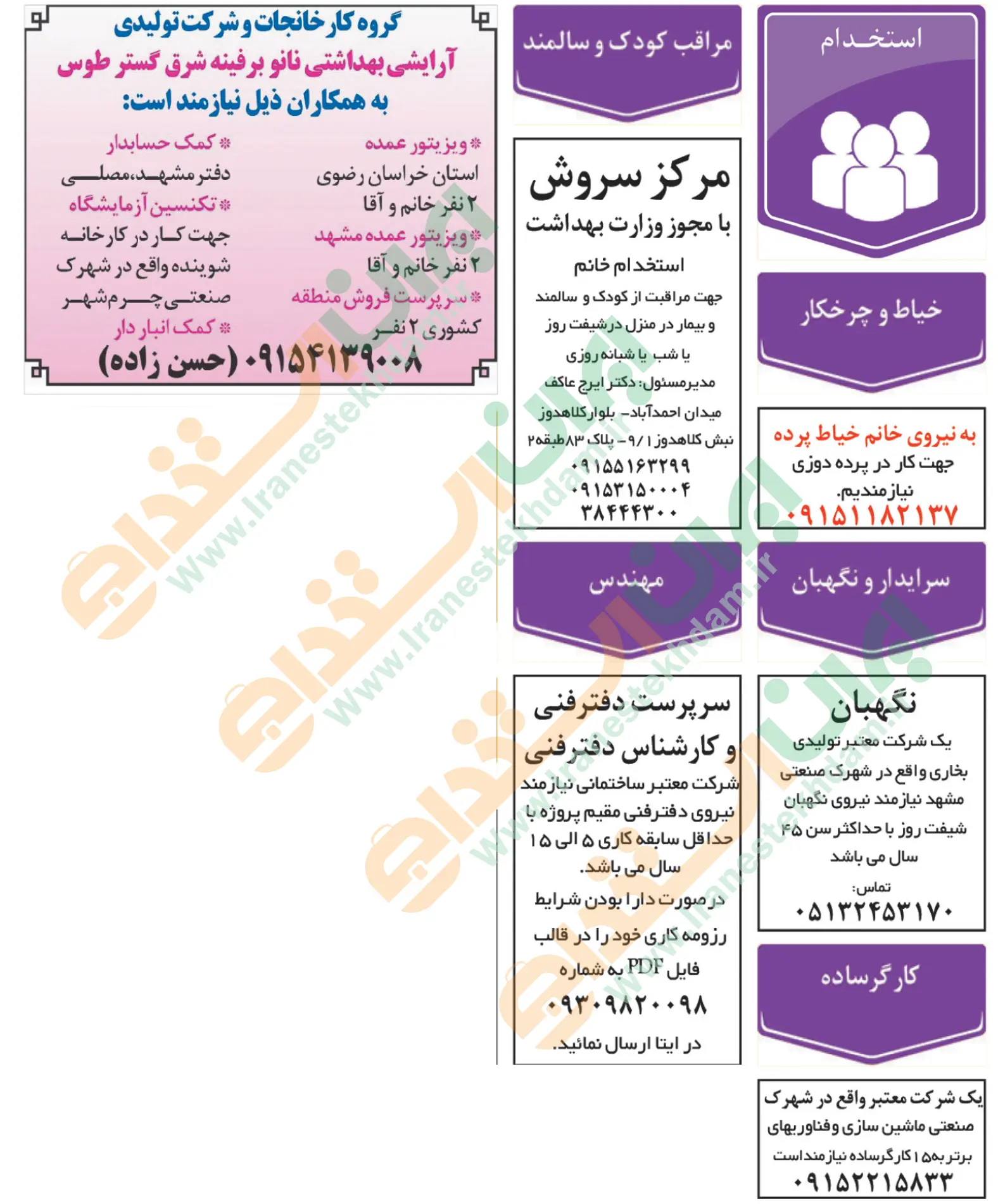 آگهی های استخدام استان خراسان و شهر مشهد
