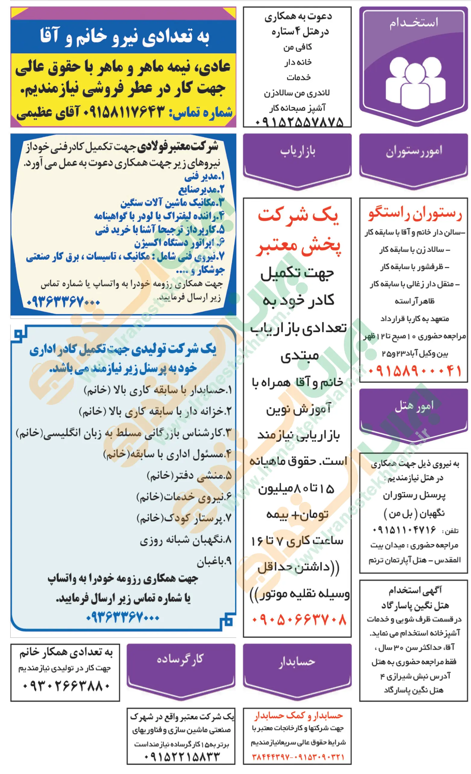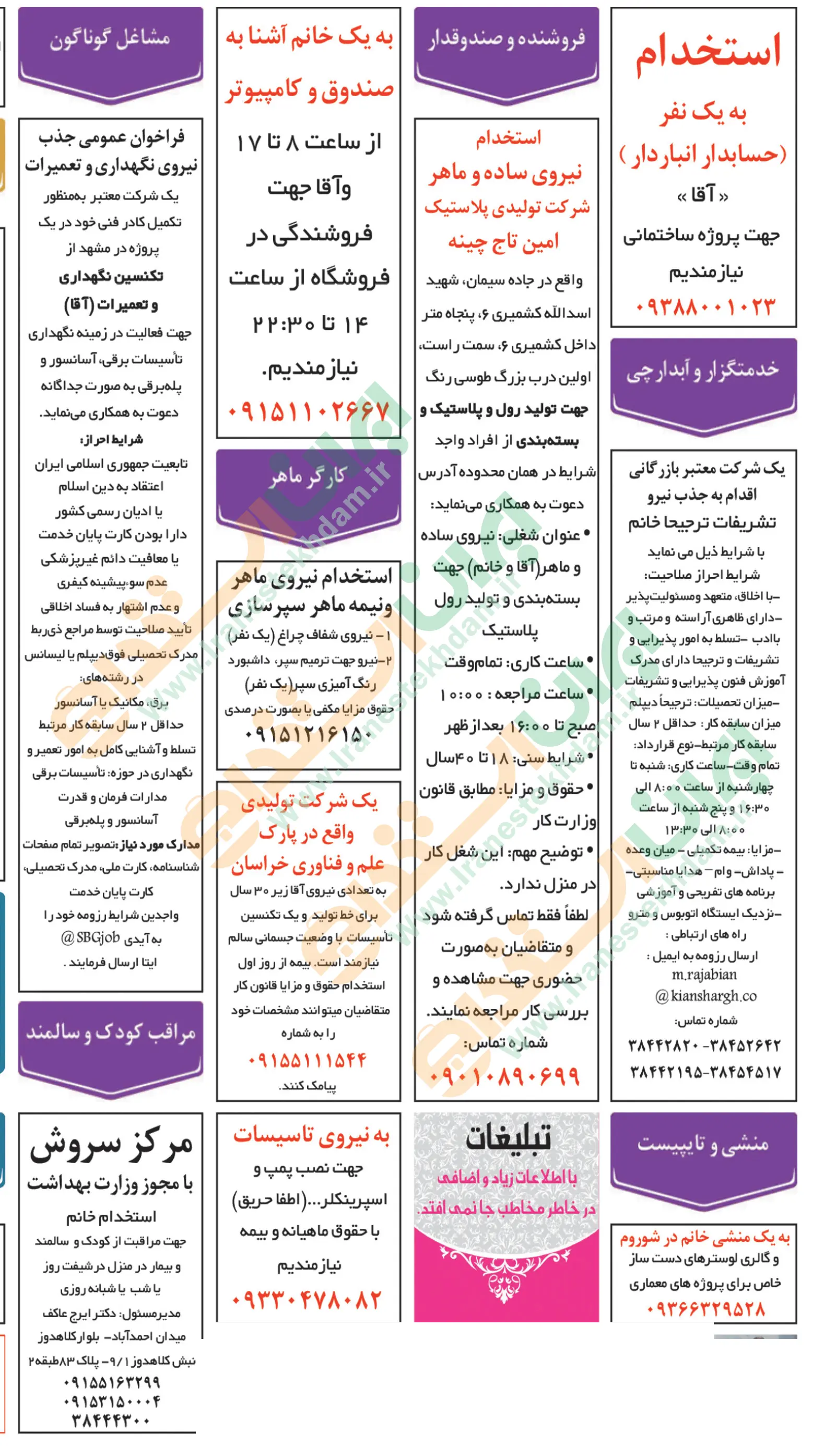 روزنامه استخدامی استان خراسان رضوی و شهر مشهد | چهارشنبه 10 دی 1404