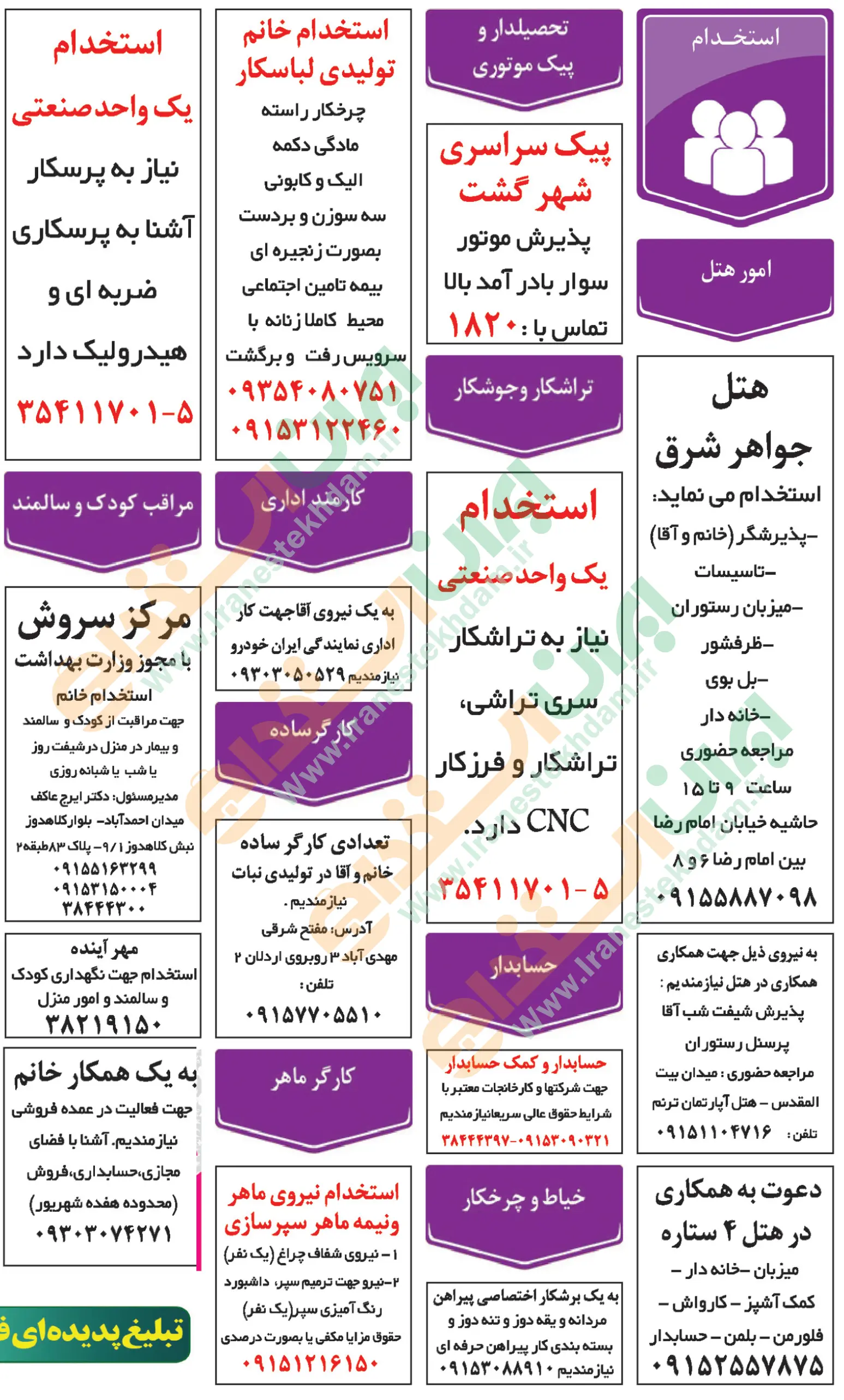 روزنامه استخدامی استان خراسان رضوی و شهر مشهد | دوشنبه 12 آبان 1404