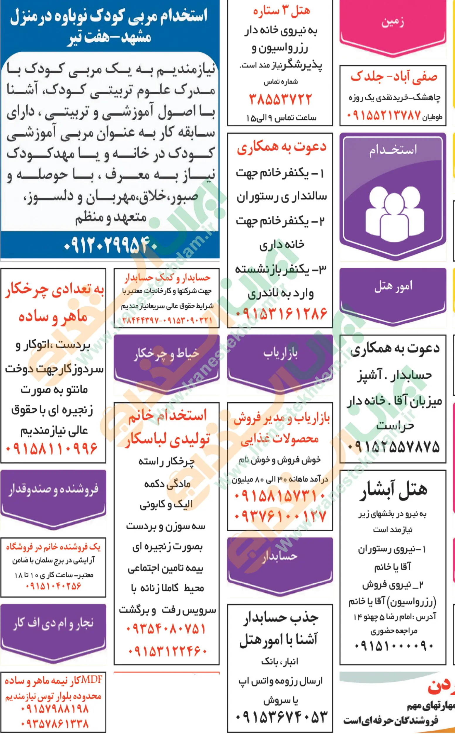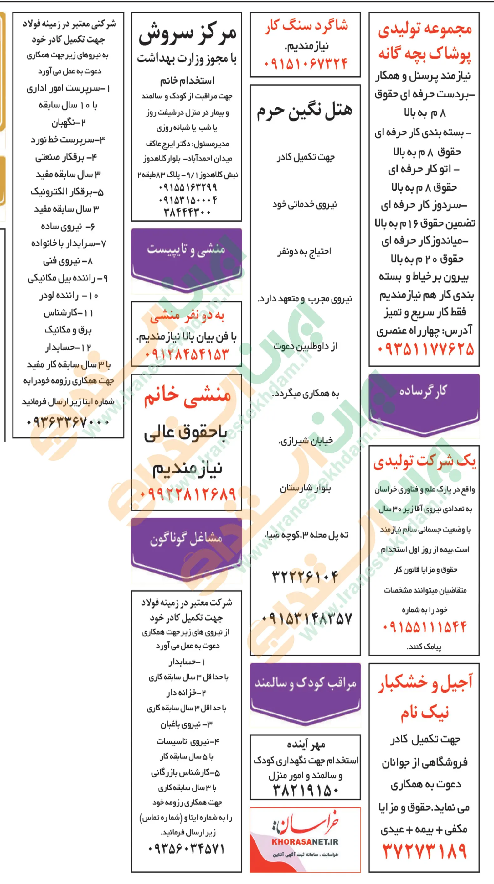 روزنامه استخدامی استان خراسان رضوی و شهر مشهد | شنبه 15 آذر 1404