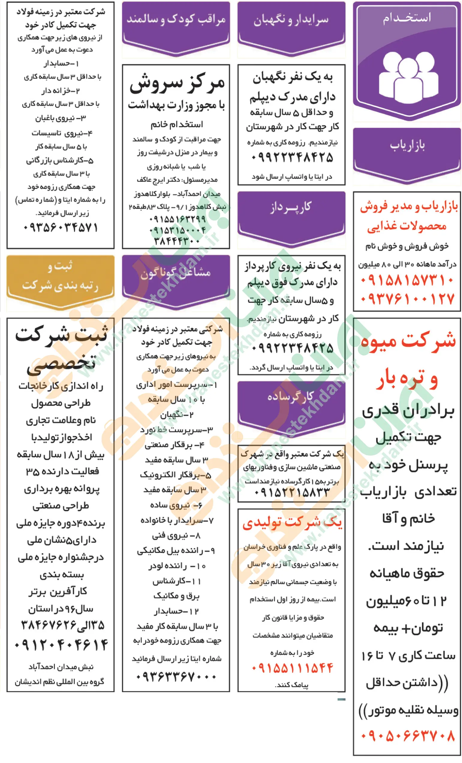 روزنامه استخدامی استان خراسان رضوی و شهر مشهد | یکشنبه 16 آذر 1404
