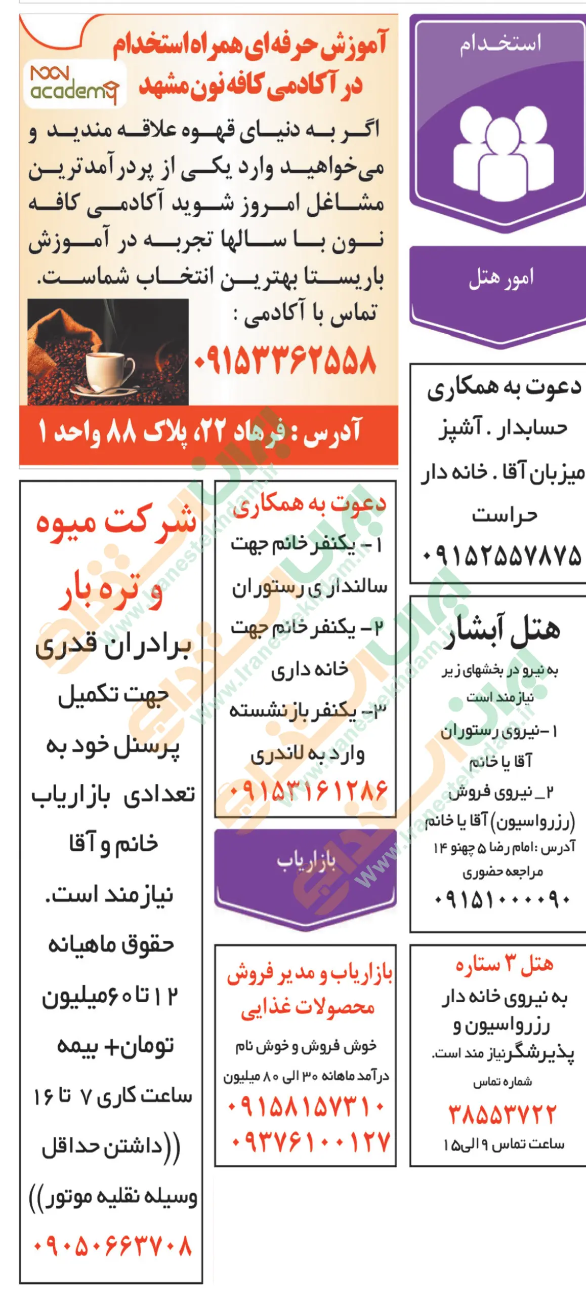 روزنامه استخدامی استان خراسان رضوی و شهر مشهد | دوشنبه 17 آذر 1404
