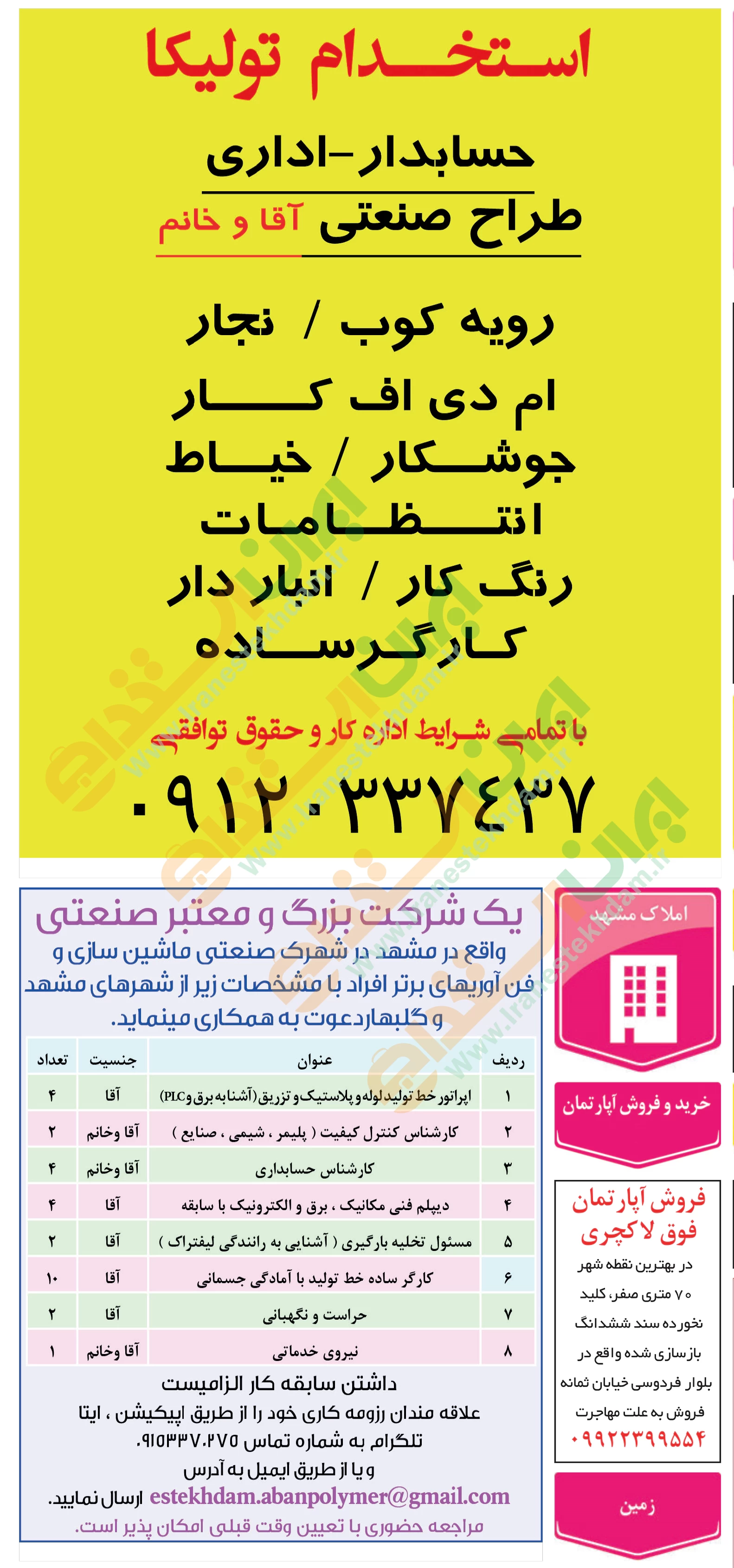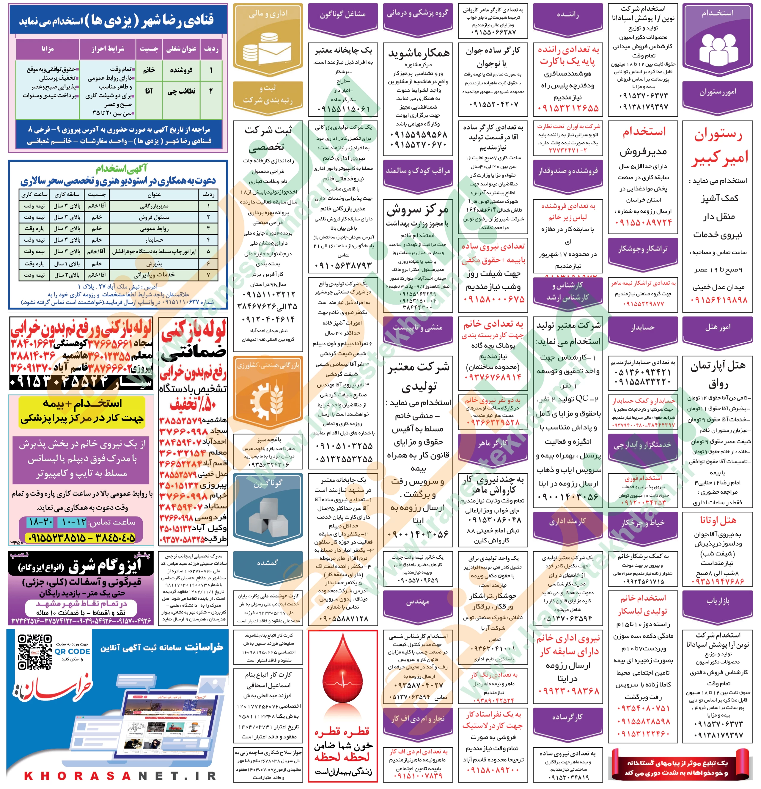 روزنامه استخدامی استان خراسان رضوی و شهر مشهد | چهارشنبه 18 مهر 1403