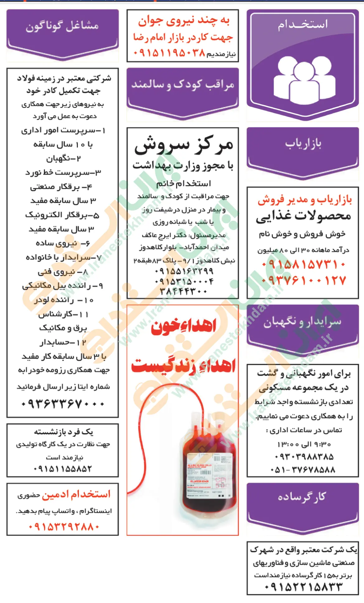 روزنامه استخدامی استان خراسان رضوی و شهر مشهد | یکشنبه 2 آذر 1404