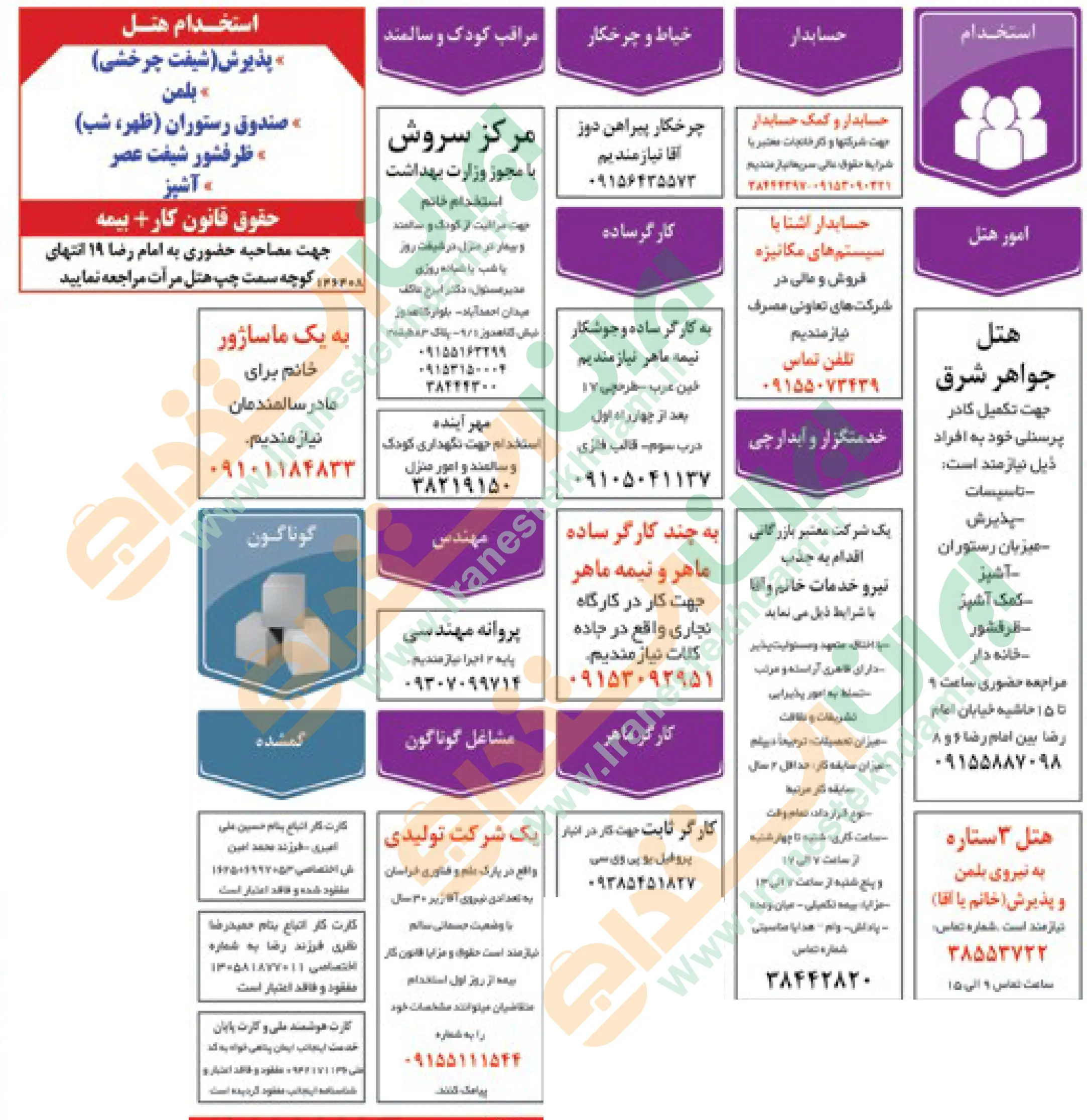 آگهی های استخدام استان خراسان و شهر مشهد