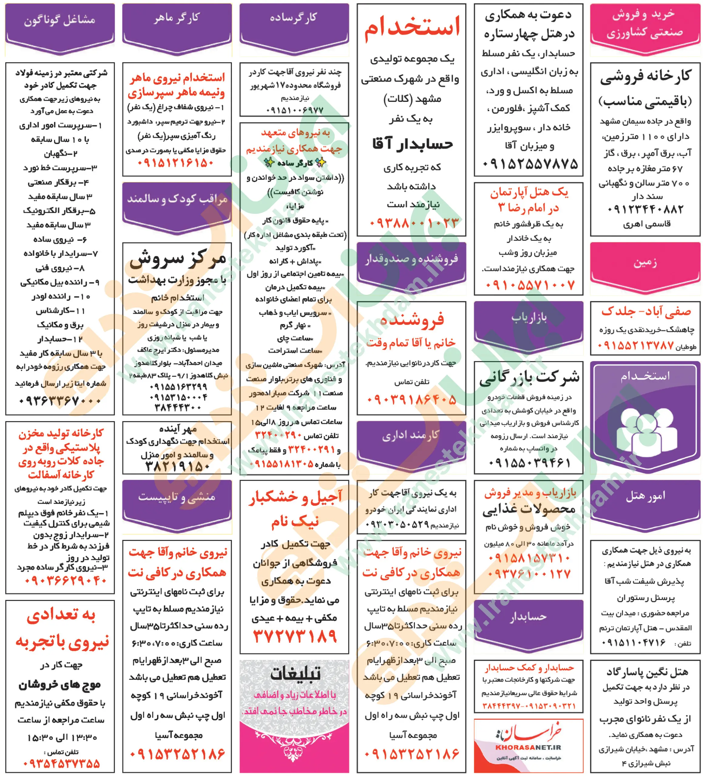 آگهی های استخدام استان خراسان و شهر مشهد