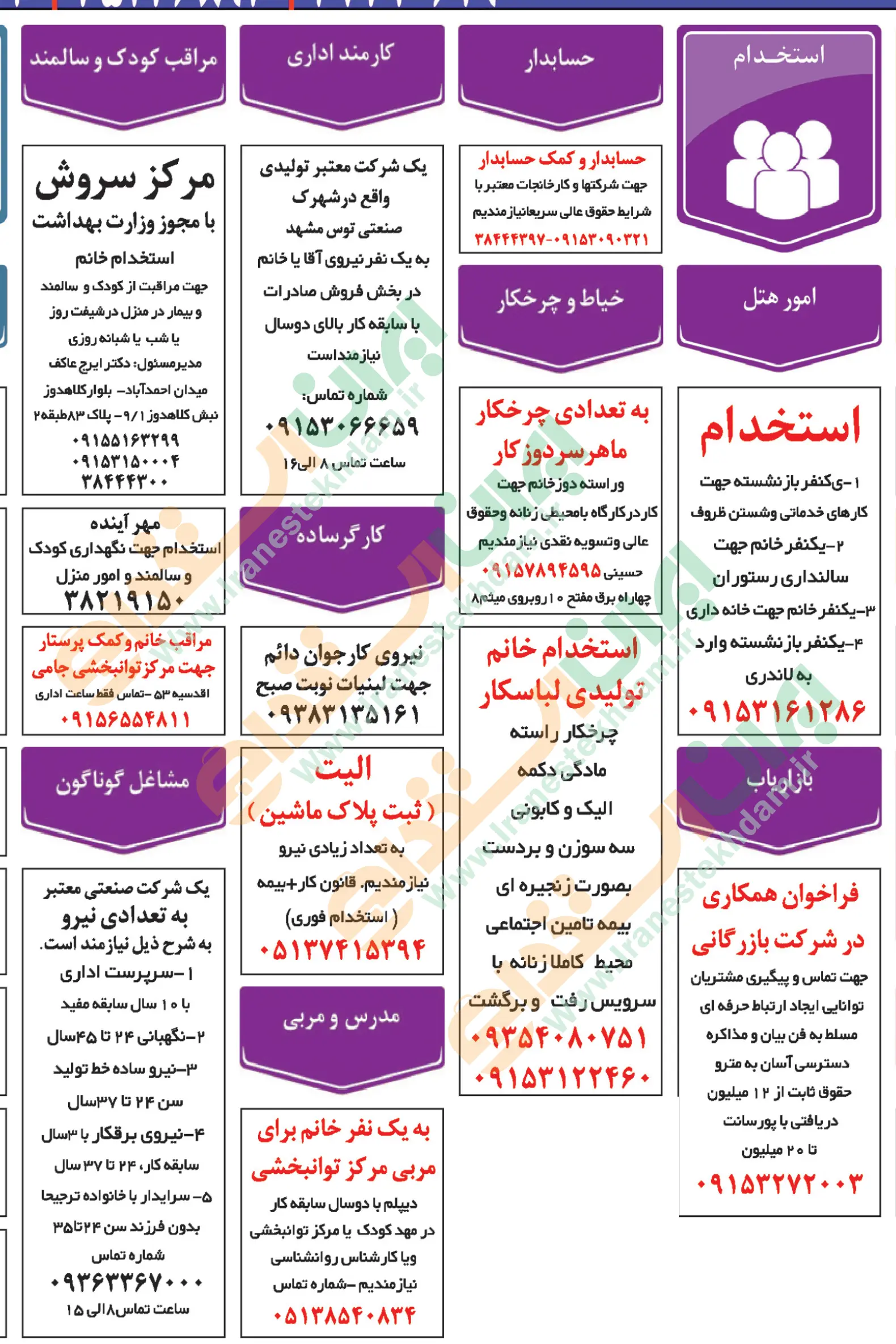 روزنامه استخدامی استان خراسان رضوی و شهر مشهد | دوشنبه 21 مهر 1404