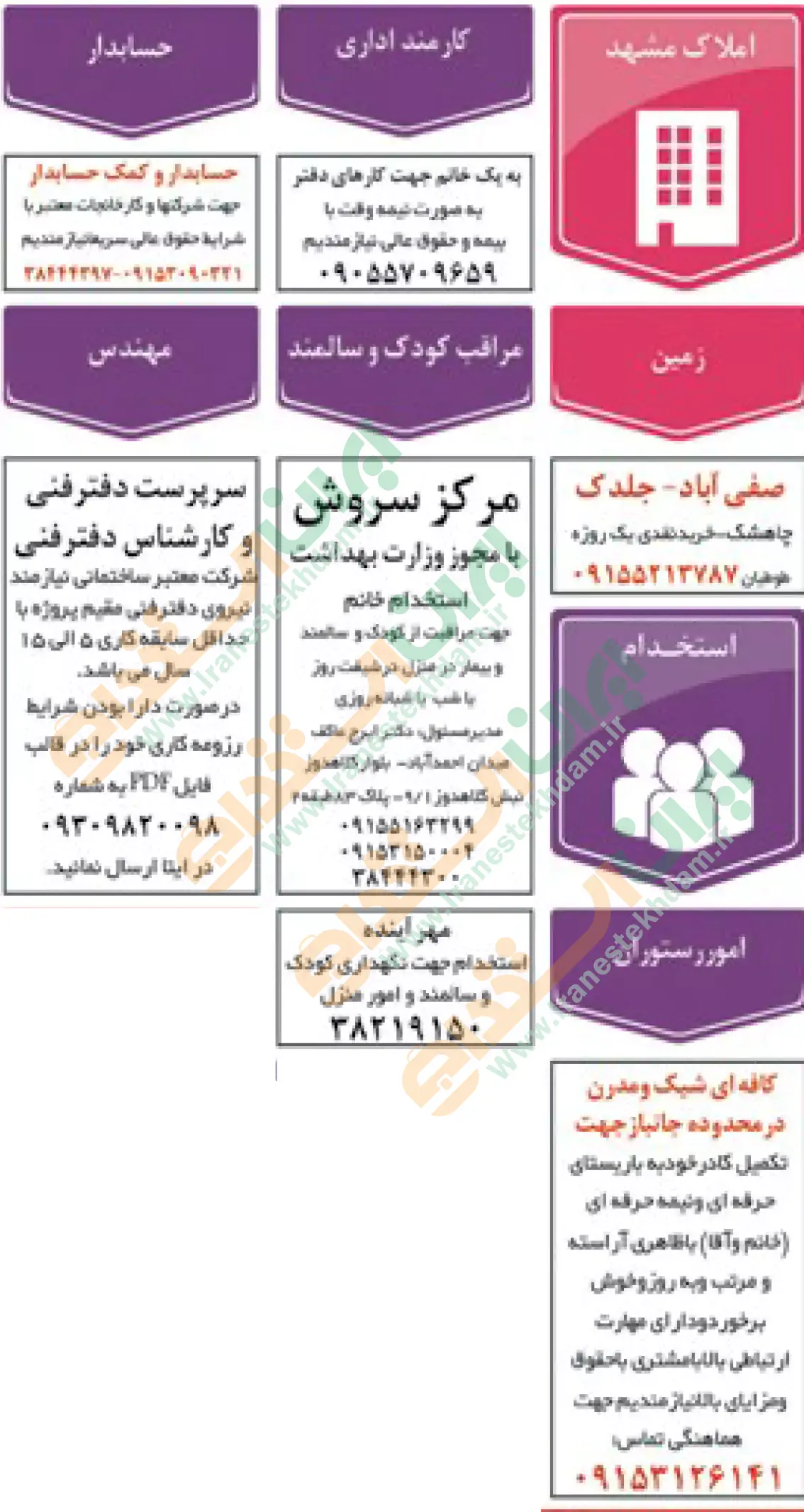 آگهی های استخدام استان خراسان و شهر مشهد