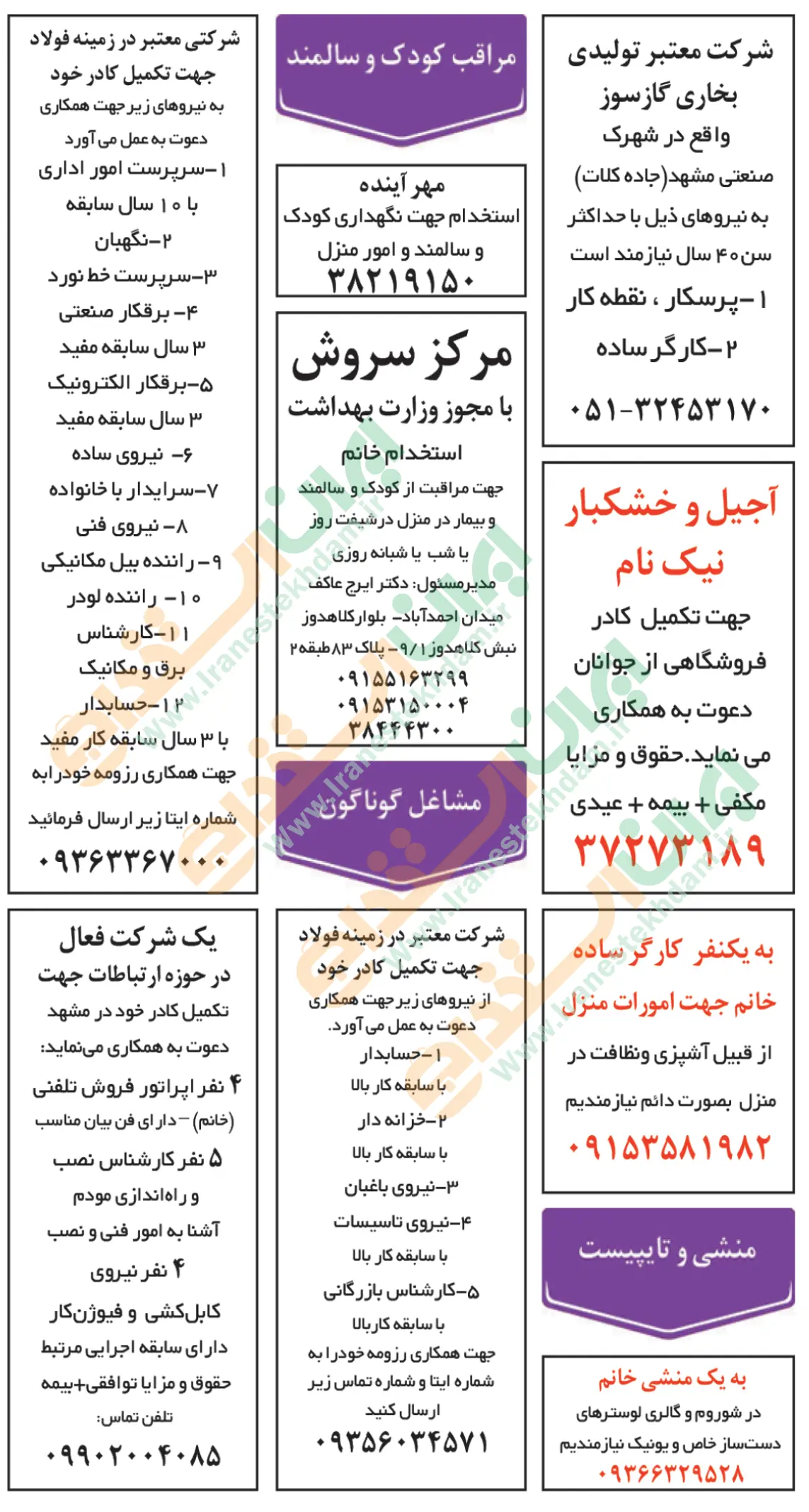 روزنامه استخدامی استان خراسان رضوی و شهر مشهد | دوشنبه 24 آذر 1404