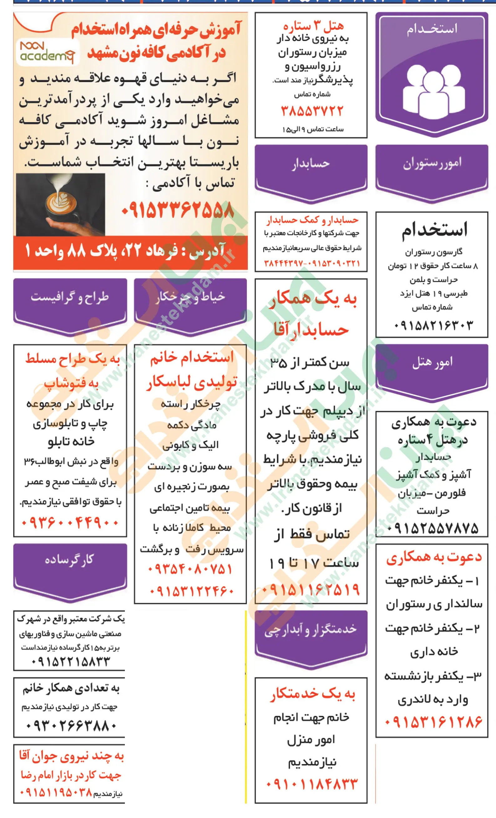 روزنامه استخدامی استان خراسان رضوی و شهر مشهد | دوشنبه ۲۴ آذر ۱۴۰۴
