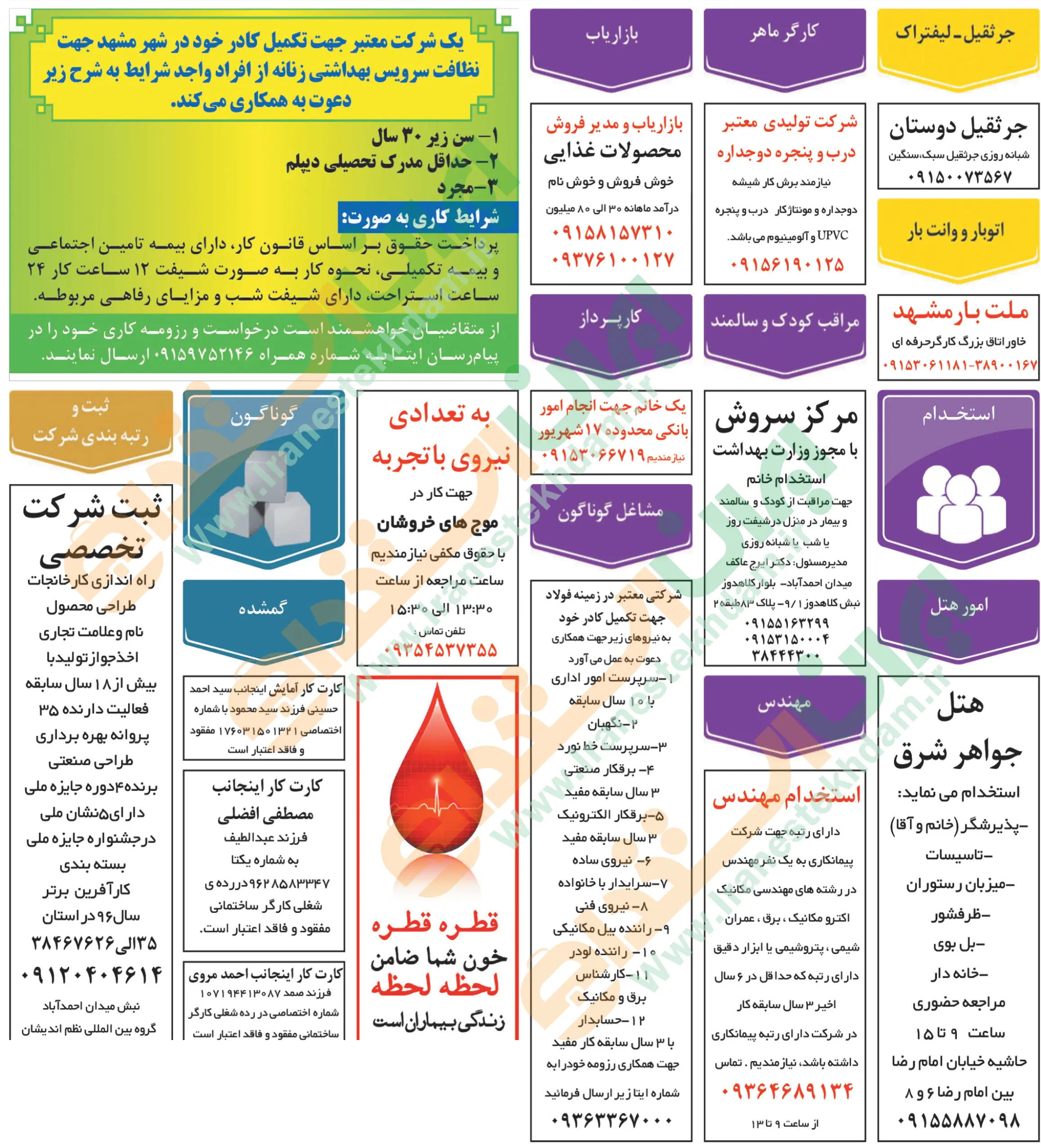 روزنامه استخدامی استان خراسان رضوی و شهر مشهد | یکشنبه 25 آبان 1404