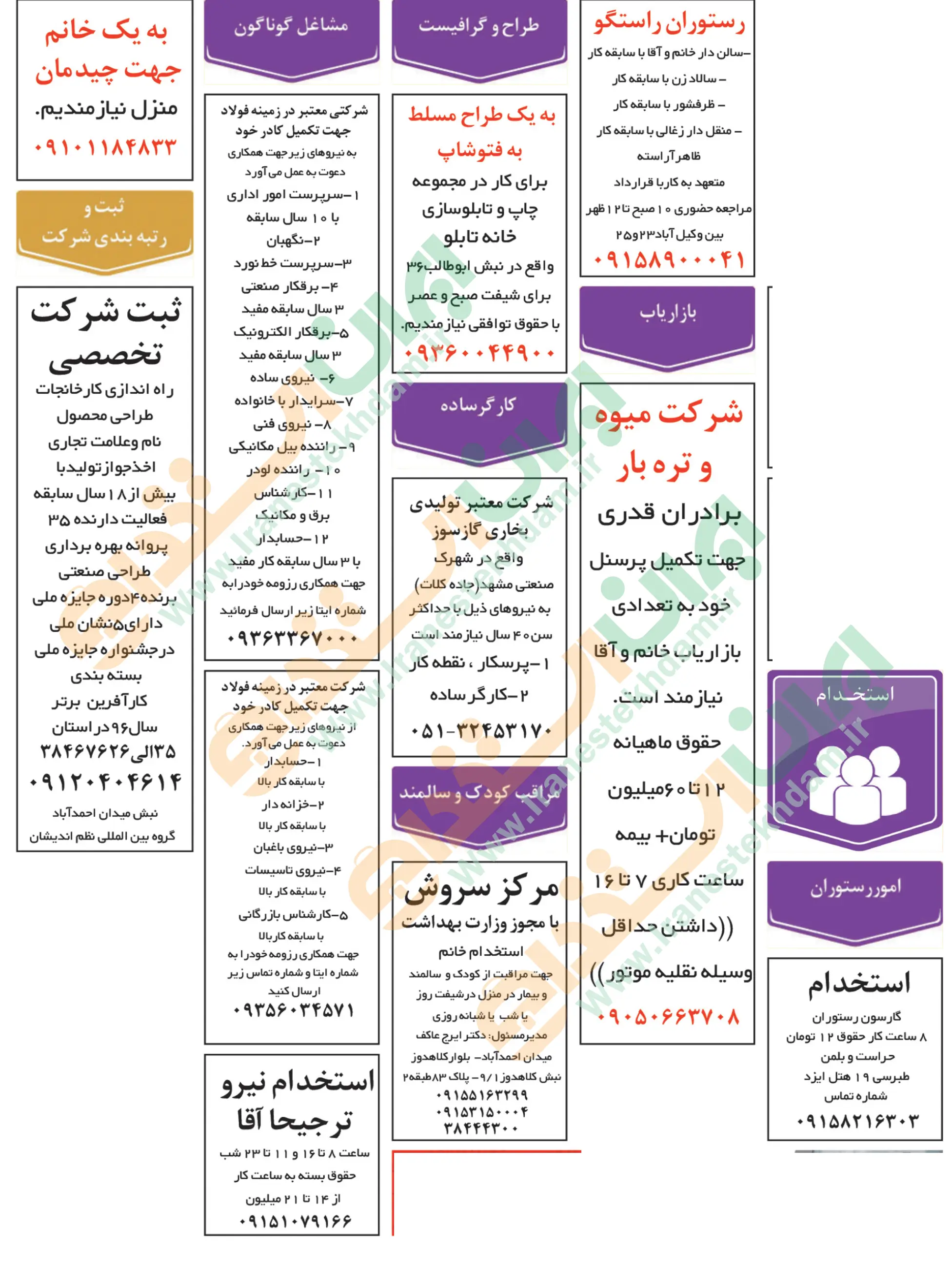 روزنامه استخدامی استان خراسان رضوی و شهر مشهد | سهشنبه ۲۵ آذر ۱۴۰۴