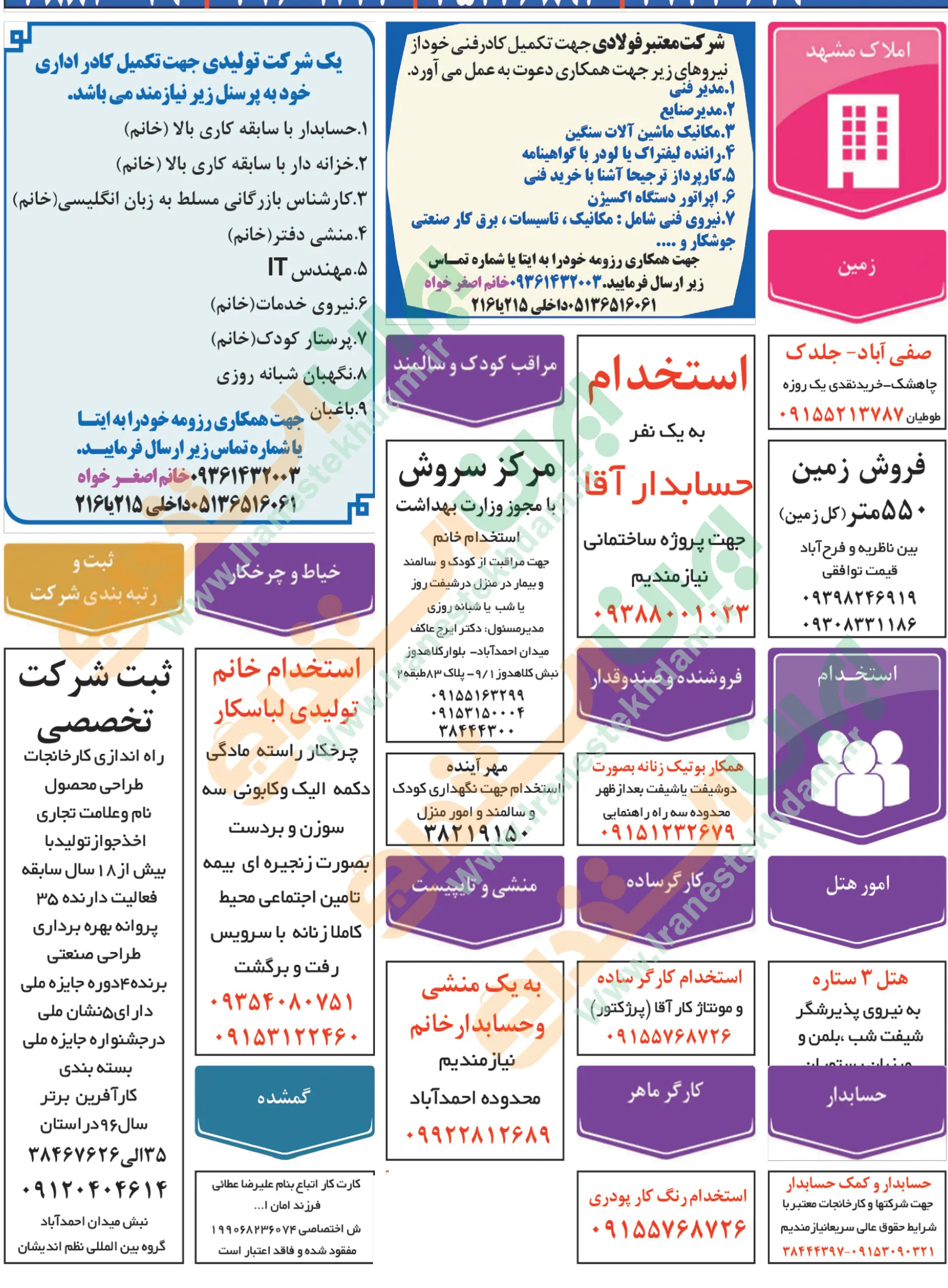 آگهی های استخدام استان خراسان و شهر مشهد