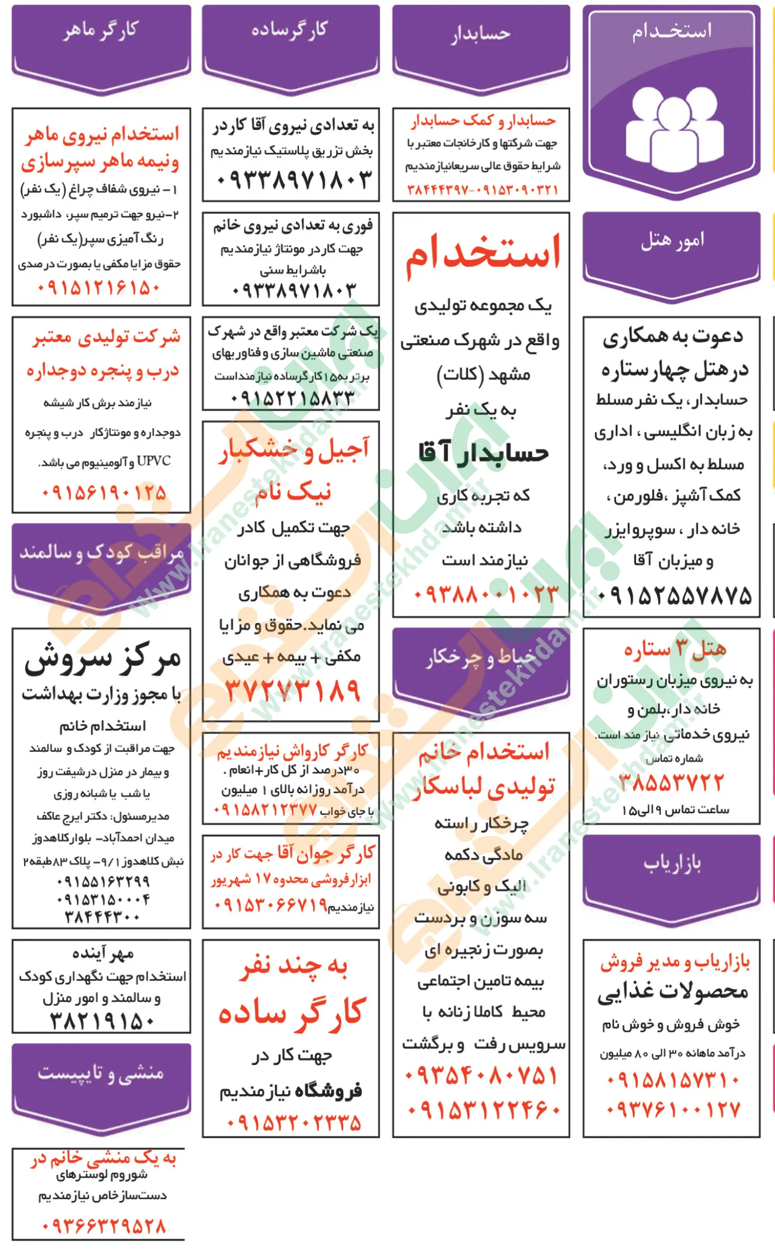 آگهی های استخدام استان خراسان و شهر مشهد