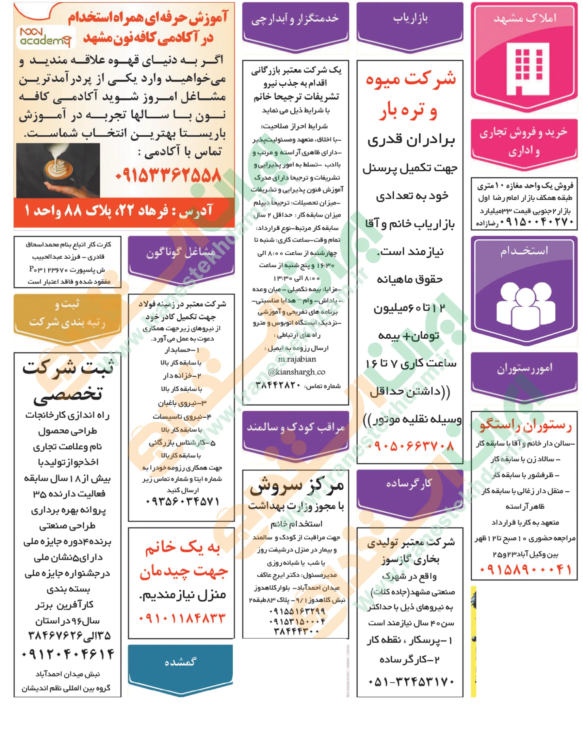روزنامه استخدامی استان خراسان رضوی و شهر مشهد | پنجشنبه 27 آذر 1404