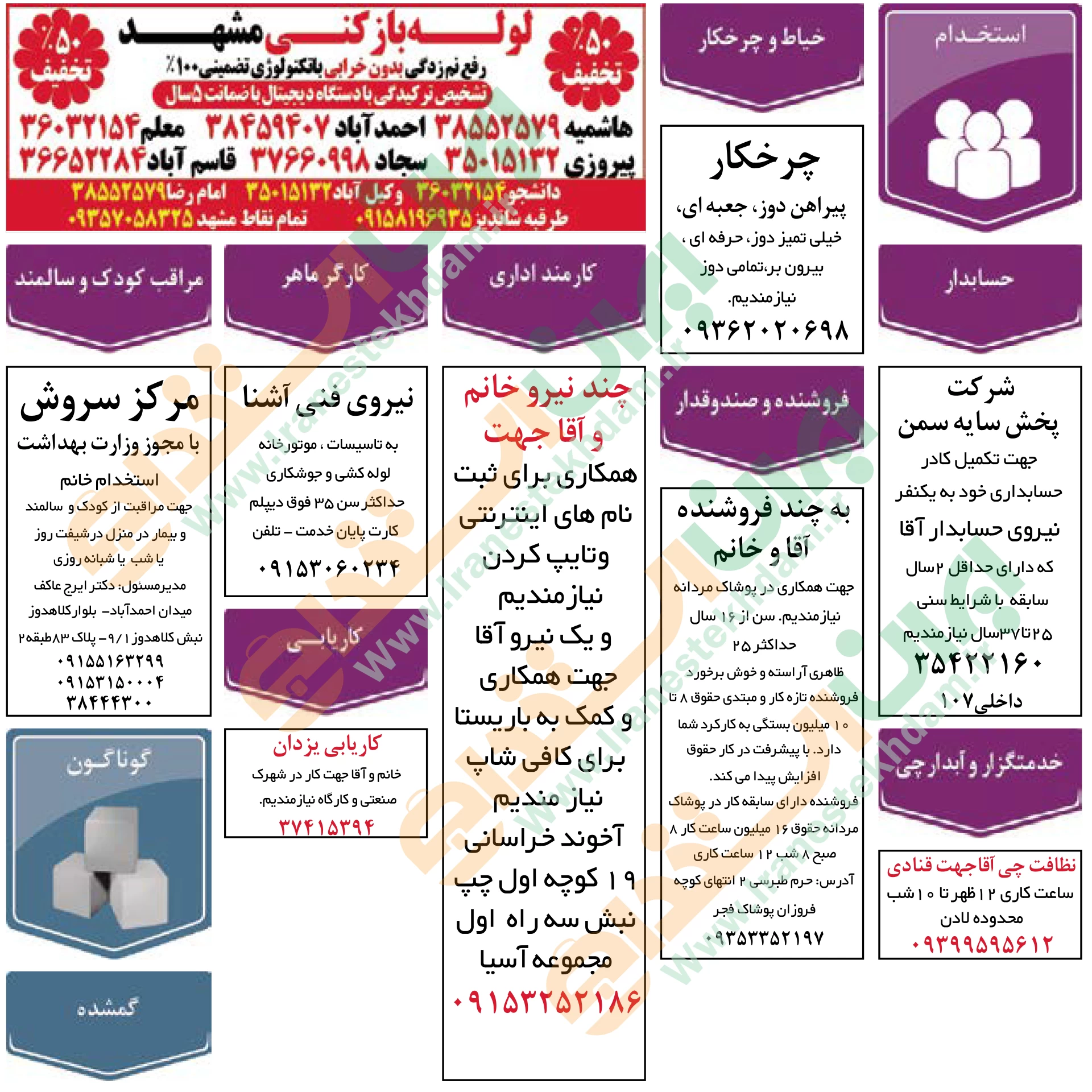 آگهی های استخدام استان خراسان و شهر مشهد