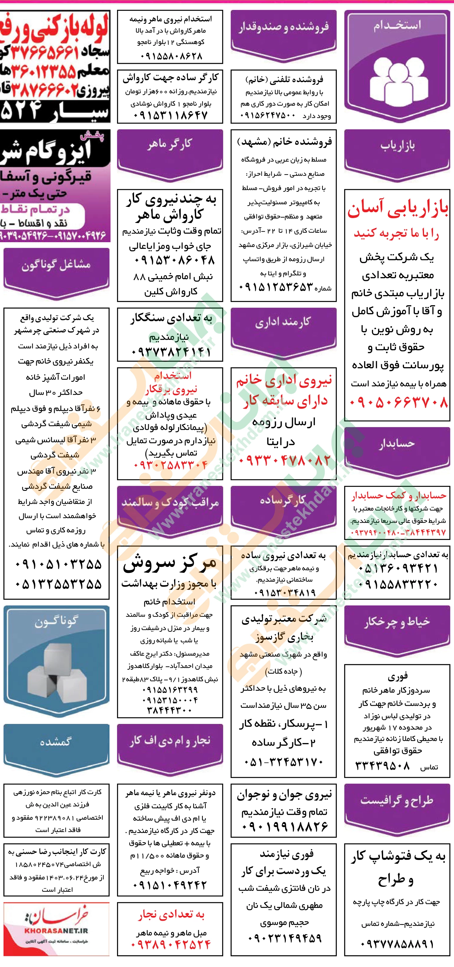 روزنامه استخدامی استان خراسان رضوی و شهر مشهد | یکشنبه 29 مهر 1403