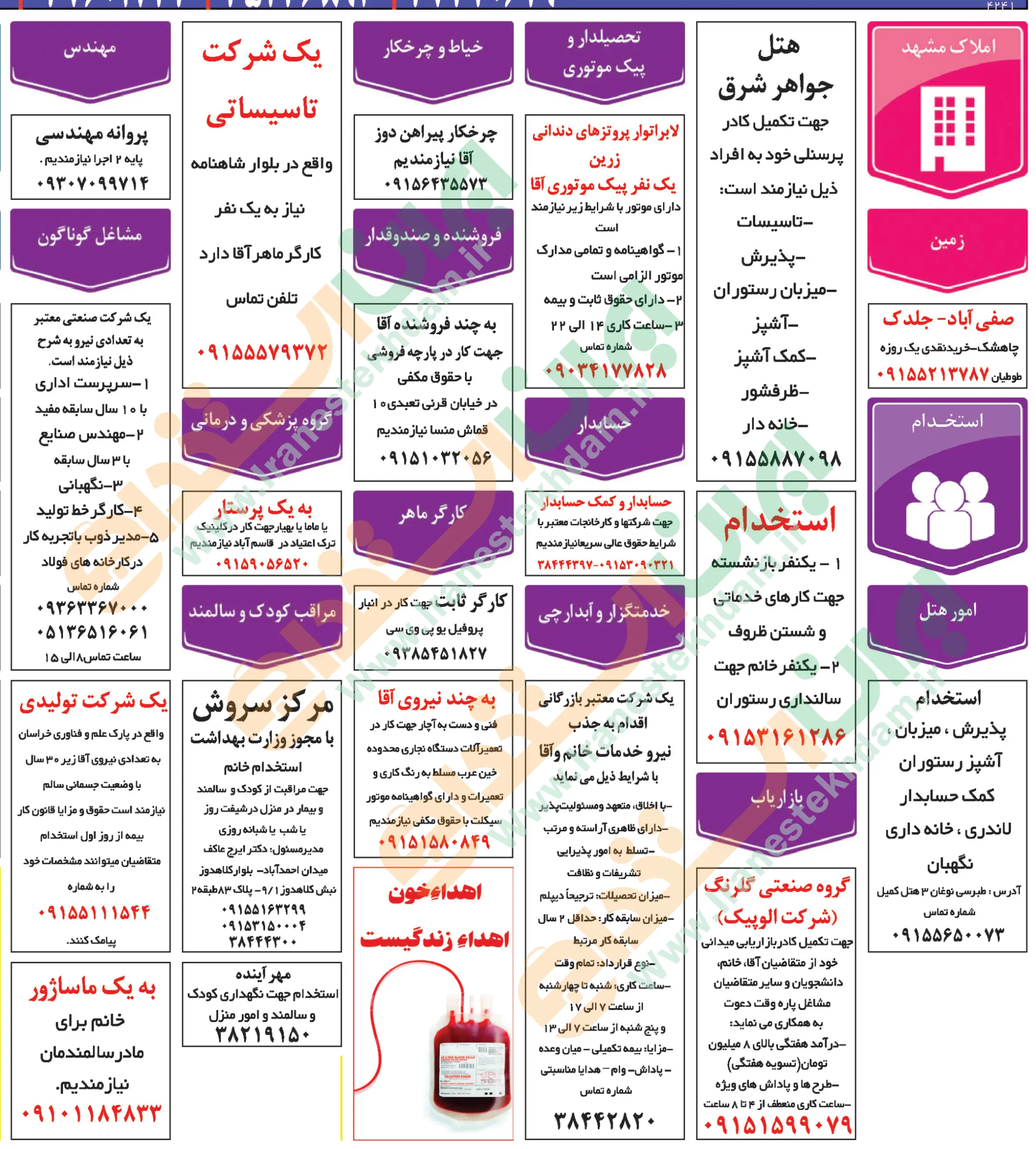 روزنامه استخدامی استان خراسان رضوی و شهر مشهد | دوشنبه 31 شهریور 1404