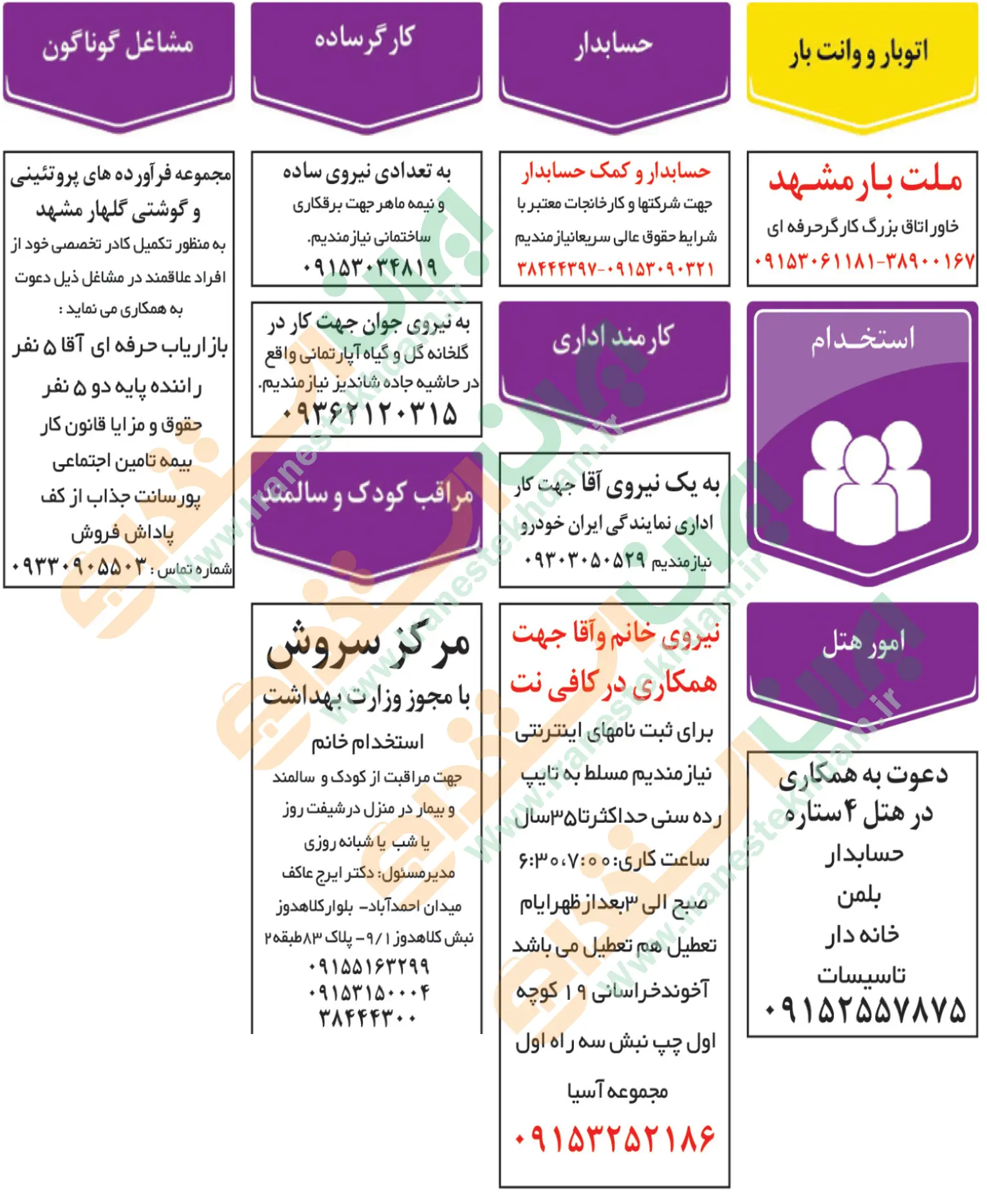 روزنامه استخدامی استان خراسان رضوی و شهر مشهد | یکشنبه 4 آبان 1404