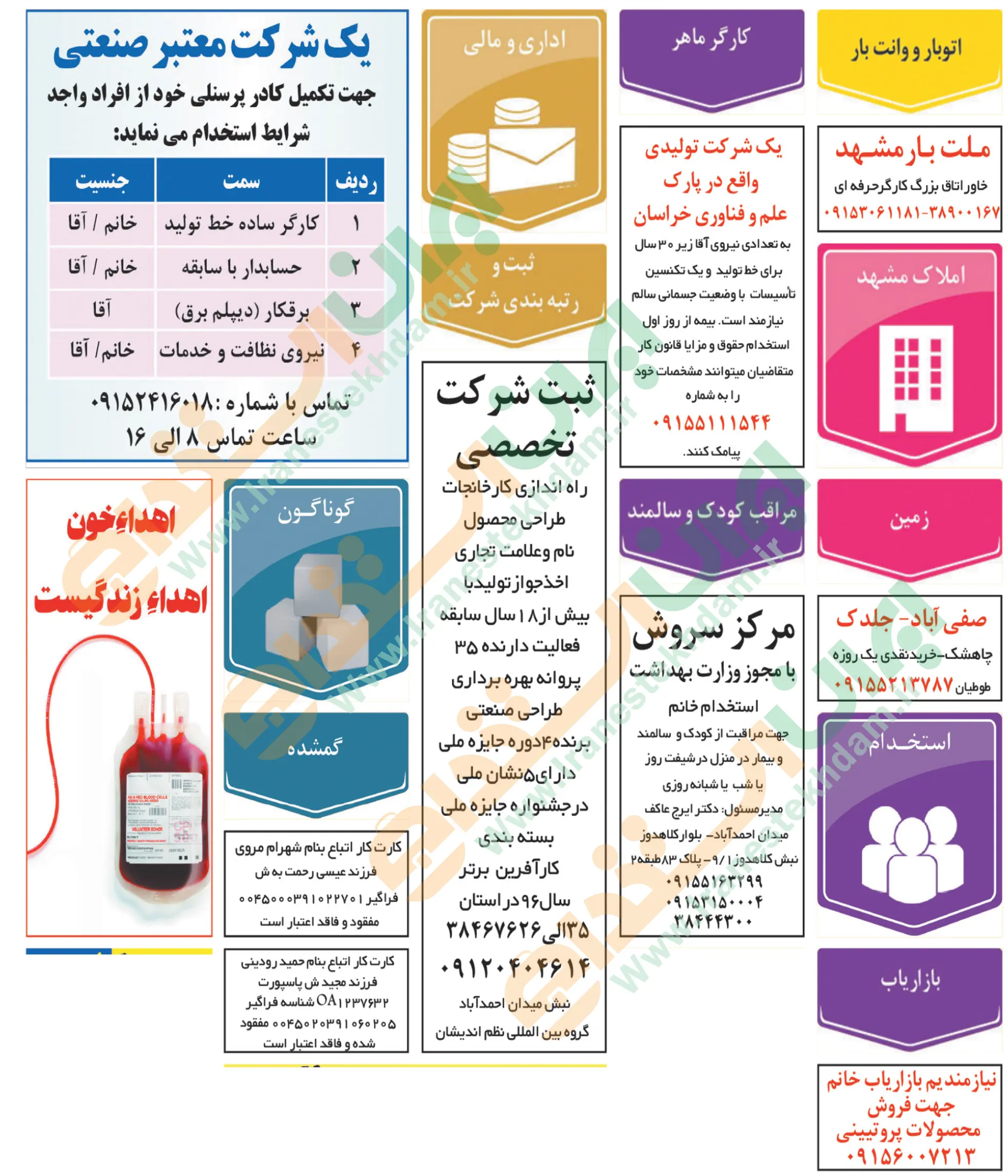آگهی های استخدام استان خراسان و شهر مشهد