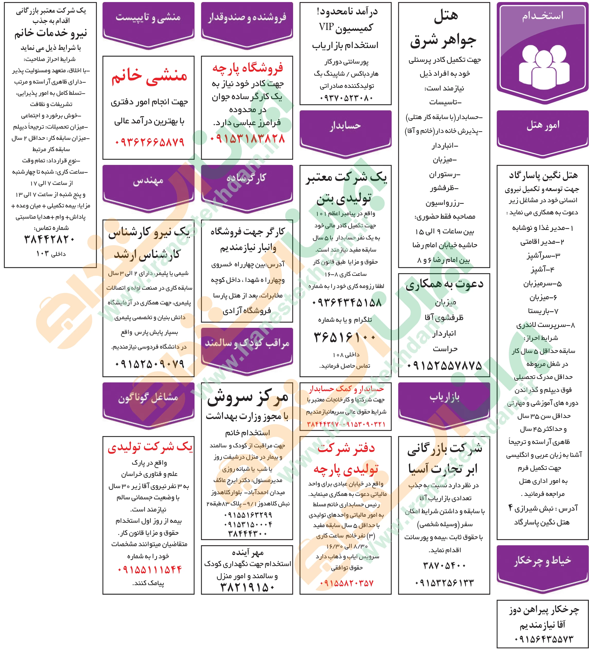 روزنامه استخدامی استان خراسان رضوی و شهر مشهد | چهارشنبه 5 شهریور 1404