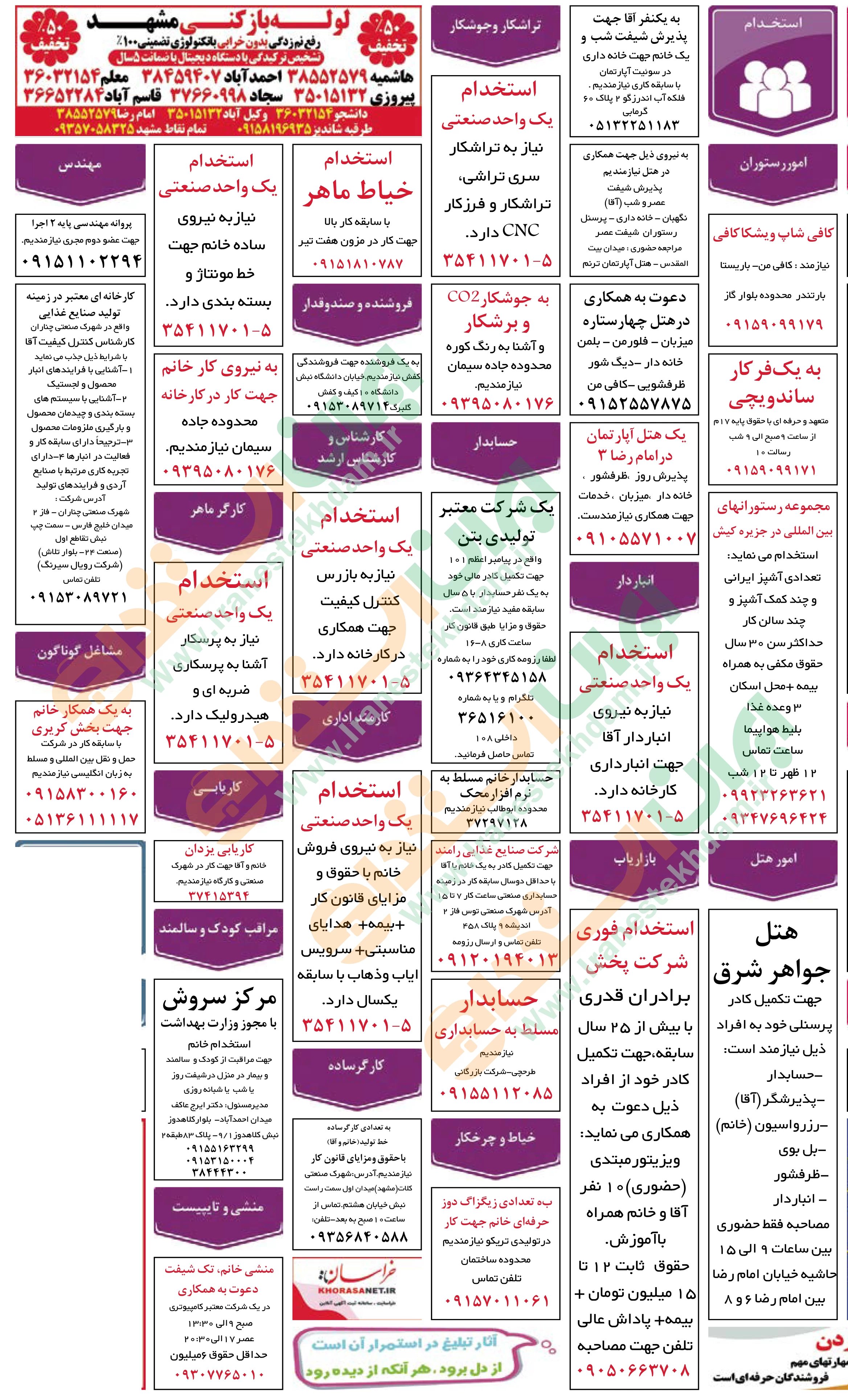 روزنامه استخدامی استان خراسان رضوی و شهر مشهد | چهارشنبه 7 خرداد 1404
