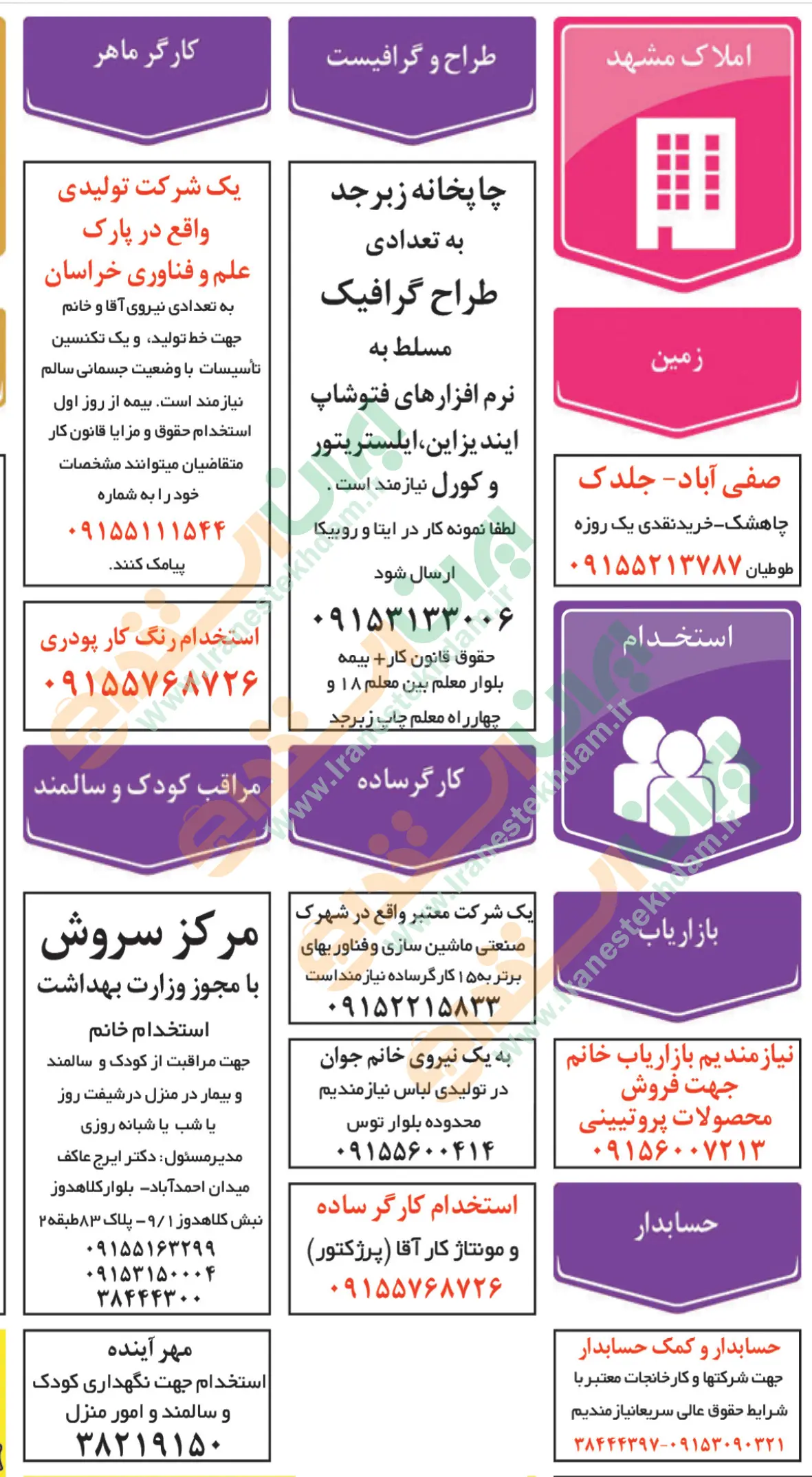 روزنامه استخدامی استان خراسان رضوی و شهر مشهد | چهارشنبه 8 بهمن 1404